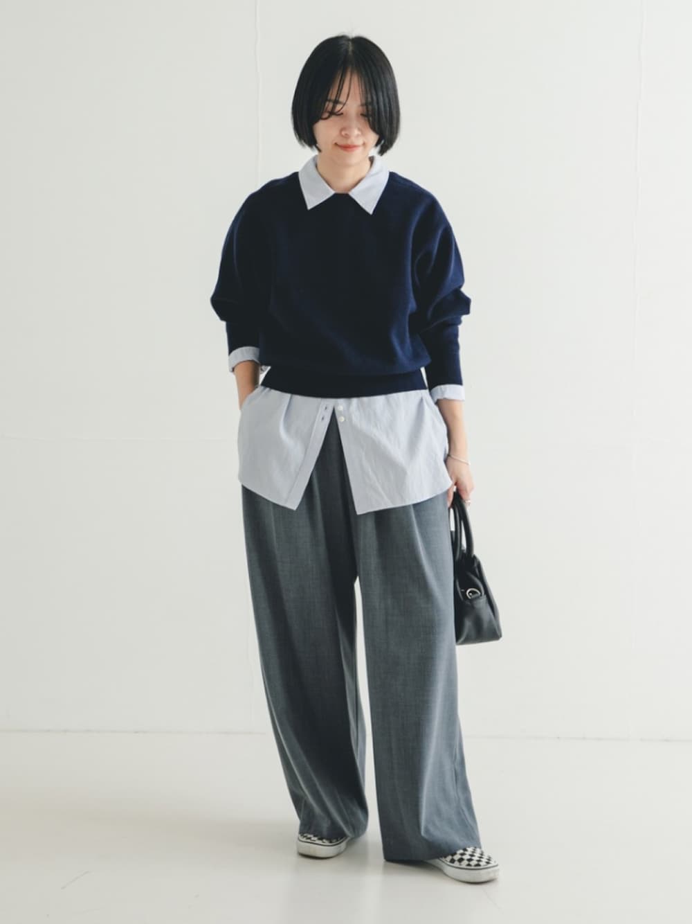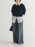 綿カシミヤの上質素材。軽やかな着心地のダブルフェイスニット。 表側に綿カシミヤの柔らかな糸、裏側にポリエステル生地を使用したダブルフェイスニットです。 肌に触れたときの心地よさと上品な質感を持ちながら、型崩れしにくく、軽量で扱いやすいのが魅力。裏側の微配色もさりげないポイントです。 ダブルフェイス特有のふっくらとしたボリューム感がありながら、重すぎない軽やかな着心地で、春まで長く活躍する万能素材。 袖にはボリュームを持たせつつも、着丈はコンパクトに仕上げているので、どんなボトムスともバランス良く着こなせます。 ギャザーパンツやボリュームスカートなど、ワイドなシルエットのボトムスと合わすのもおすすめ。 シンプルなクルーネックデザインで、カジュアルからきれいめまで幅広いスタイリングにマッチします。 暖かさと美しいシルエットを両立した、人気のタックギャザーストレートパンツ。 この秋冬にぴったりのウールブレンド素材で、温かみのある風合いに仕上げました。 柔らかく伸縮性もあるので、ストレスなく快適に着用いただけます。 ウエストはぐるりゴムギャザーで楽な穿き心地です。 ベルト内側の紐でサイズ調整もできるため、ご自身の体型に合わせてお使いいただけます。 体のラインを拾わないゆったりとしたイージーなサイズ感ながら、ワイドすぎないストレートシルエットが魅力。すっきりと見せてくれるので、幅広い体型の方におすすめです。 ご自宅の洗濯機で洗えるため、お手入れも簡単です。 ニットやシャツと合わせればオフィスシーンにも、カジュアルなトップスと合わせれば普段使いにも。 オンオフ問わず活躍する、頼れる一着です。