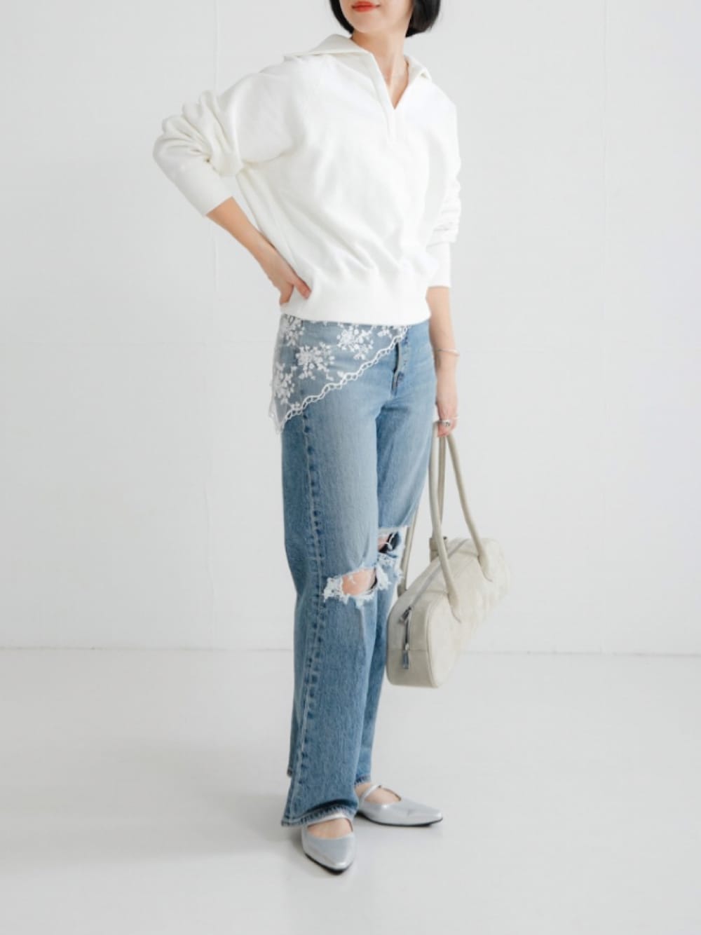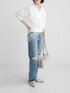 大人な抜け感を演出する、セーラーカラースウェット。 ほどよくカジュアルな裏起毛素材に、抜け感のあるセーラーカラーを組み合わせた一着です。着回し力の高いスウェット素材ながら、一枚で着映えするデザインが魅力。 甘さを抑えた開きすぎないVネックは大人にも着やすく、顔まわりをすっきりと見せてくれます。程よくゆとりのあるシルエットに、腰でしっかり止まる裾のリブ切り替えを施しており、ボトムスを選ばずバランスよく決まります 一枚での着用はもちろん、インナーにロンTやタートルネックを合わせたレイヤードスタイルもおすすめ。重ね着次第でロングシーズンに活躍します。 スラックスで大人っぽくまとめたり、光沢のある女性らしいスカートを合わせて素材のコントラストを楽しんだりと、幅広い着こなしに重宝する一着です。 Levi’sのラインナップの中で最もハイライズのRIBCAGEジーンズを、アーバンリサーチだけの別注デザインでご用意。 合わせやすい中濃インディゴカラーに程よいヴィンテージ加工と膝のダメージを施し、ファッション性の高いデザインに仕上げました。 ヘビーオンスのシュリンク・トゥ・フィット素材を使用し、オーセンティックなデニムの表情はそのままに、ストレッチ性をプラスし穿き心地を向上させています。 ハイライズデザインがヒップを小さく、ウエスト位置を高く見せてくれるので、美脚効果も抜群な一本です。