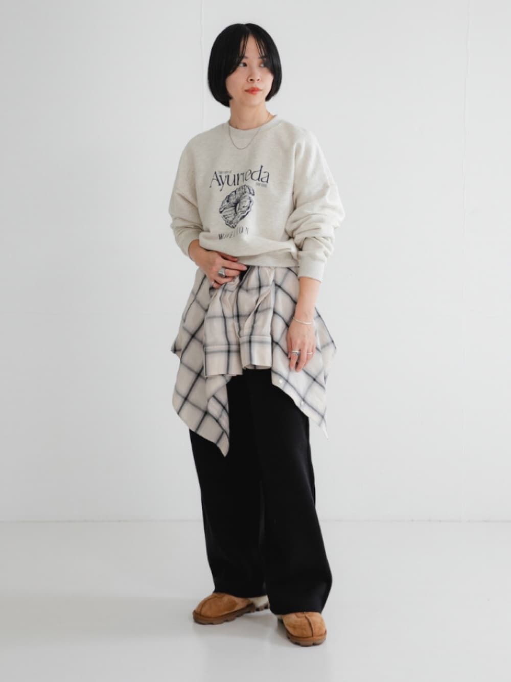 インラインのスウェットに、WAVEUNIONオリジナルのプリントを載せた別注アイテム。 程よい厚みがジャケットなどのインナーとしても着回しやすく、すっきりとした着丈がボリュームのあるボトムスともバランスの取りやすい一着。 コンパクトな見た目ながらも、程よいゆとりのあるサイズがリラックスした着心地です。 シミヤ混の極上の肌触り。ルーズシルエットのニットパンツ。 上質なカシミヤ混素材を使用した、リラックス感のあるニットパンツです。 しなやかな肌触りと軽い穿き心地が魅力。穿くとほんのりコクーンシルエットになるのが特徴で、ラフすぎず上品な印象を演出します。 ウエストはゴム仕様で快適なフィット感。内側にはスピンドル(紐)が入っているので、ウエストサイズを自由に調整していただけます。 カジュアルにもきれいめにも合わせやすく、デイリーウェアとして活躍します。 コンパクトなトップスと合わせるとバランス良くまとまります。