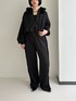 Crinkle Crinkle Crinkleで高い人気を誇るジャージコレクションから、特別な別注アイテムをご用意。 スポーティな素材感と、ブランドのシグニチャーである優美なフリルデザインが融合した唯一無二の一着。 ストレッチの効いたジャージ素材が、見た目の美しさだけでなく、リラックス感のある快適な着心地を実現します。 存在感のあるフリルカラーは取り外しが可能で、アクセサリー感覚で使用できるところもデザインポイント。 シンプルなトラックジャケットとしても着用が可能なため、幅広いスタイリングにマッチします。 カジュアルなトラックパンツの要素と、女性らしいフリルデザインを融合させたモード感溢れる一着。 リラックス感のあるストレートシルエットがスポーティになりすぎず、裾のジッパーを開ければフレアシルエットに変化するため脚長効果も期待できます。 シンプルなトップスに合わせるだけで、ワンンランク上のトレンドスタイルが完成する主役級のパンツです。 ジャケット・パンツは同素材ですので、セットアップでの着用もおすすめです。