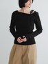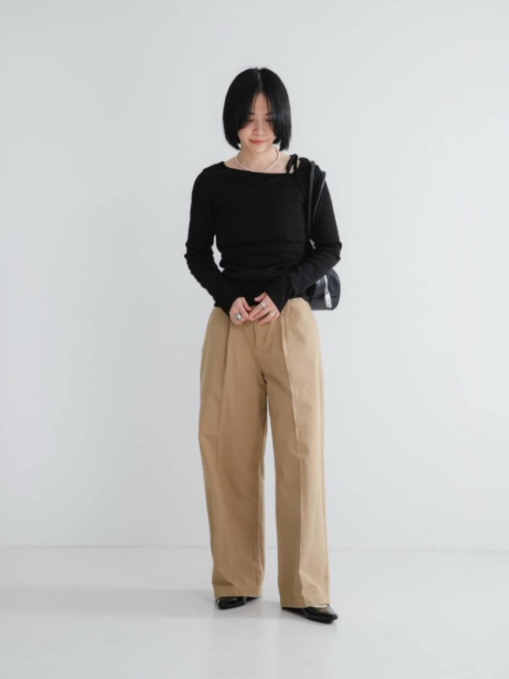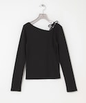 ヘルシーな肌見せを叶える、カットアウトリボントップス。 デコルテから肩にかけてのラインを美しく魅せるアシンメトリーなカッティングに、華奢なリボンディテールを添えて、モードさと女性らしさを絶妙なバランスで表現しました。 リボンは、チョーカー風に首に巻いたり、ラフに結んだりと、その日の気分でニュアンスを変えられるのが魅力です。 程よくフィット感のあるリブ素材は、体のラインを拾いすぎず、クリーンで洗練されたシルエットを演出。 一枚で着てもしっかりと着映えしますし、ジャケットのインナーとして印象的なネックラインを覗かせるスタイリングもおすすめです。 女性らしいデザインを活かし、デニムでカジュアルダウンした着こなしが今年らしくておすすめ。 どんなボトムスとも相性が良く、大人のワードローブに寄り添う万能な一着です。