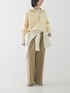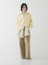 ネックの開きやレイヤードで、多彩な表情の変化を楽しめるハーフジップスウェットニット。 柔らかなスウェットタッチとニットの温かみを両立したジップトップです。 ハーフジップの開閉でシルエットを自由に調整でき、カジュアルにも大人っぽくも着こなせます。ふんわりとした素材感ながら、軽やかな着心地も魅力です。 コンパクトな着丈のため、長めのシャツとのレイヤードやレーススカートを合わせたミックススタイルもおすすめ。裾のリブが腰位置で止まるので、ボトムスを選ばずバランス良く決まります。春先までロングシーズン活躍する万能な一着です。 美脚シルエットと着回し力を誇る、ワードローブに欠かせないベルト付きタックワイドチノパンツ。 綿100%の程よくハリのあるチノ素材に製品洗い加工を施し、自然なアタリや柔らかさを出した一着です。フロントのワンタックが腰回りに程よいゆとりを与え、広がりすぎないワイドストレートのシルエットが脚のラインをすらっと美しく見せてくれます。 同素材のベルト付きでウエストの調節が可能。カジュアルなチノ素材ながら、センタープレスを施すことでラフになりすぎず、きれいめなコーディネートにも馴染む上品な仕上がりになっています。 体形や身長にあわせて選べる3サイズ展開で、シーズンを問わず長く愛用いただける万能な一本です。 キュプラシャツやレースキャミ、ドレープカットソーなど、女性らしいトップスを合わせた大人のきれいめカジュアルスタイルがおすすめ。