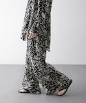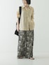 リネン100%のナチュラルな風合いと、アレンジ自在な2WAY仕様が魅力のリネンシャツ。 リネン素材がさらりと肌馴染みが良く、デイリーに使いやすいレギュラーカラーシャツです。 内側の身頃脇に釦とホールを施しており、ねじって留めることでカシュクールのようなアレンジが楽しめる2WAYデザインに仕上げました。 程よい透け感があり、リネン素材ならではの清涼感とともに、大人っぽい抜け感を演出。 落ち着いたブラウンに加え、春夏らしさを引き立てるオリジナルのマルチストライプを展開しています。ストライプはピッチを細めに設定しているため、主張しすぎずコーディネートに馴染みやすいのも嬉しいポイントです。 一枚で着るのはもちろん、前を開けて羽織りとしても活躍する万能アイテム。綿麻デニムパンツとのカジュアルスタイルにもおすすめ。 自然のエネルギーを感じさせるグラフィカルなプリントを、現代的なリラックスフォルムに落とし込んだ贅沢なアイテム。 たっぷりとしたワイドシルエットは、身体のラインを拾わず、大人の余裕を感じさせる抜け感を演出。 ウエストゴム仕様のリラクシーな穿き心地ながら、落ち感のある素材が、360度どこから見てもサマになるモダンな佇まいを叶えます。 さらりとした清涼感のある素材が気温の高い季節でも快適な穿き心地を実現。 シワになりにくいのも日常使いに嬉しいポイントです。 シンプルなアイテムとのスタイリングも華やかに彩る、主役級の一着です。