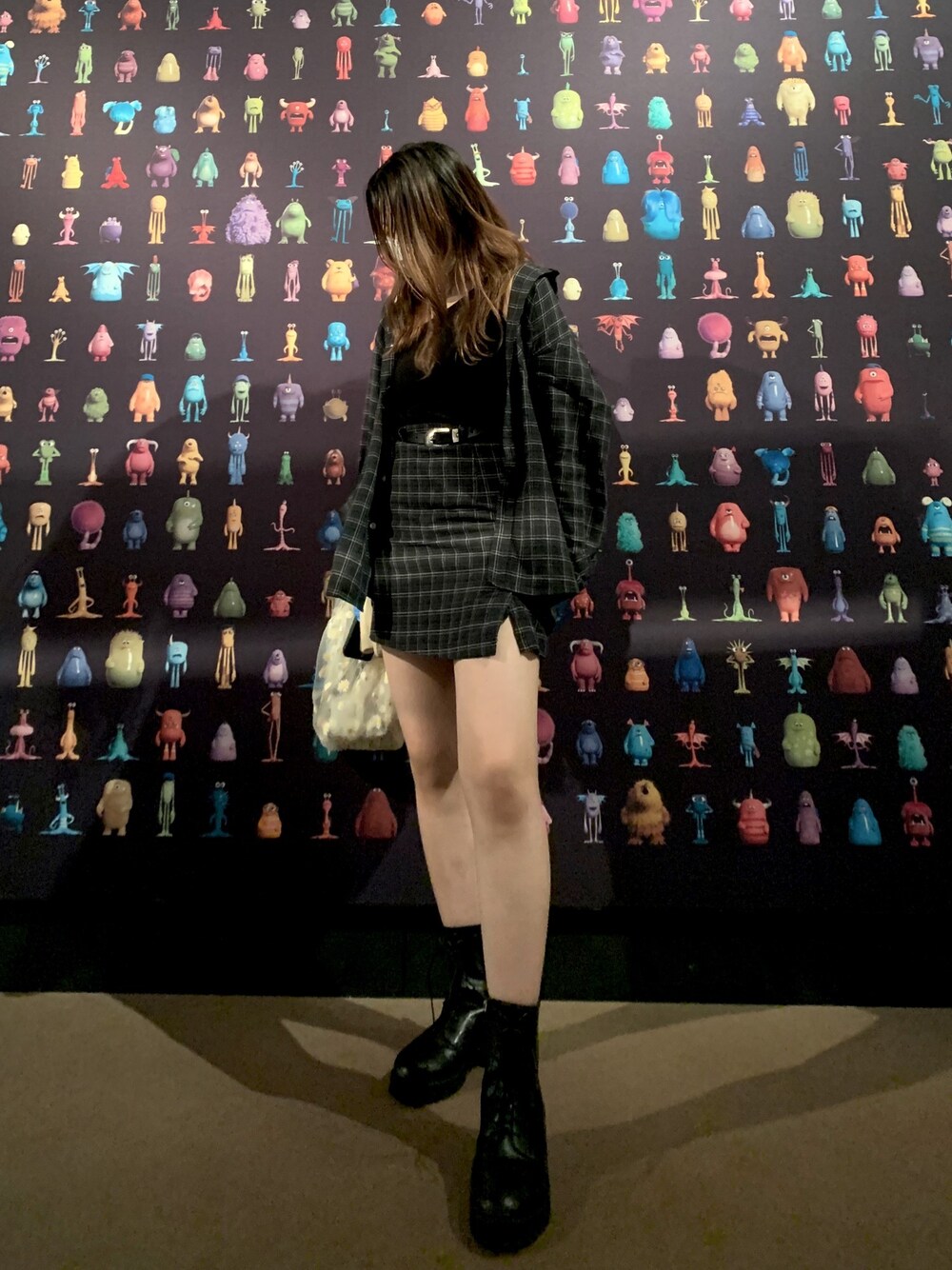 セットアップだいすき人間😆 . PAGEBOYのコンバットブーツは疲れないし歩きやすいから愛用中❣️ オールブラックにあえて脚を出して、スッキリ見せて重くならないようにしてみました~♡