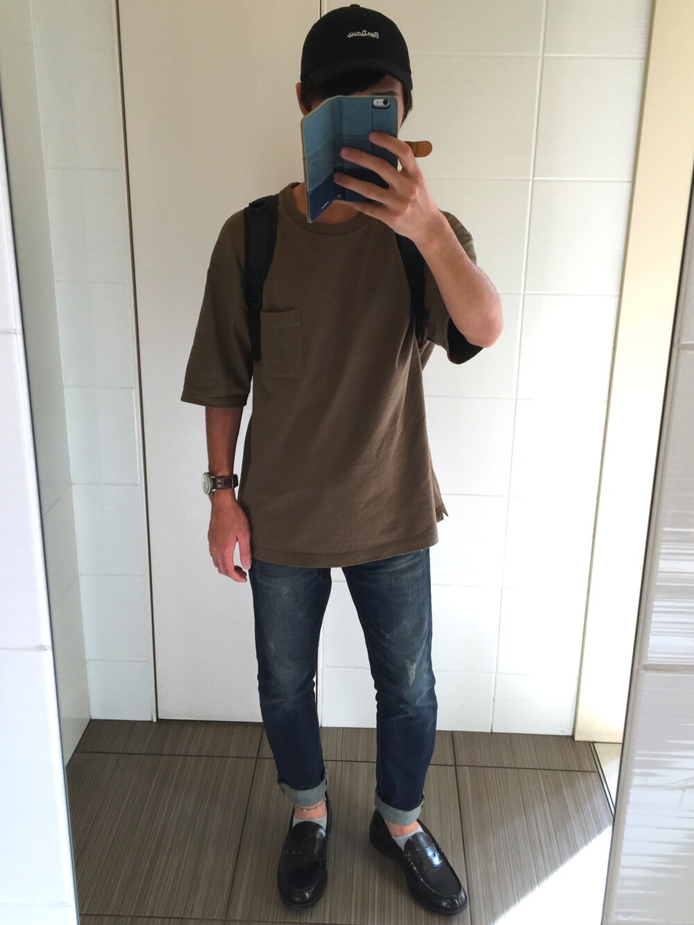 カジュアルなコーディネートに腕時計とローファーを合わせることで無骨さを主張しすぎない、少し綺麗めな丁度いいコーディネートにしました!