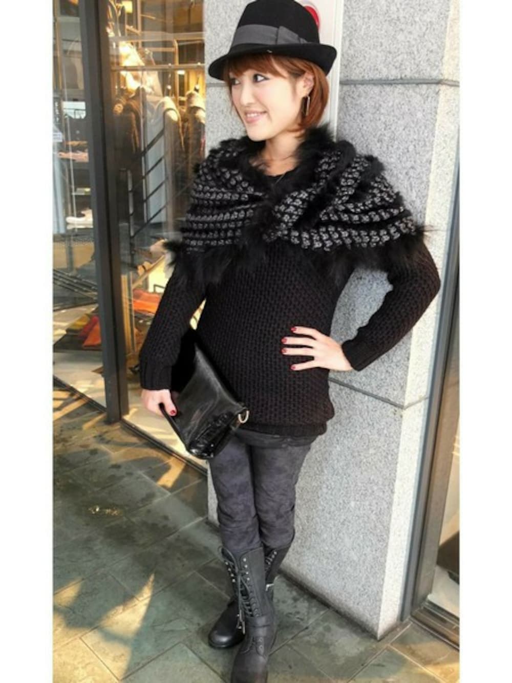 テーマはBLACK Coordinate!! ざっくりシルエットのニットにアクセントでスヌードを合わせてます♪ さり気無いムラ柄のパンツに今季旬のクラッチBAGを合わせモード感溢れるコーディネートに!!