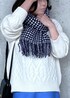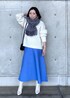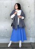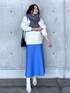 冬といえばケーブルニット!! ざっくりシルエットが可愛いこちらのニットには鮮やかなブルーのニットスカートと千鳥格子のストールを。 ヒールを履いてさらにスタイルアップ♪