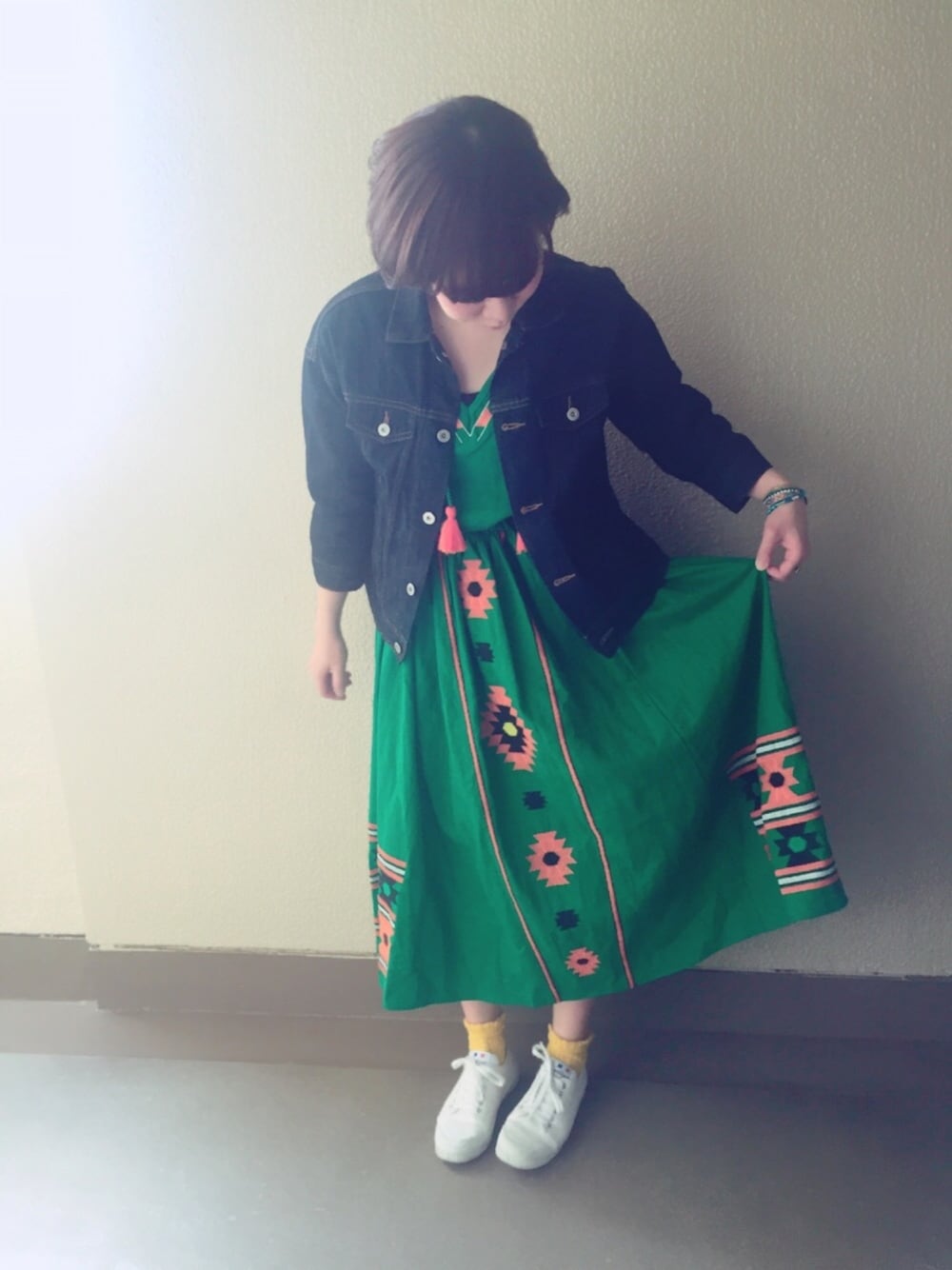 macky_のデニムジャケット「デニム7分袖Gジャン」を使ったコーディネート