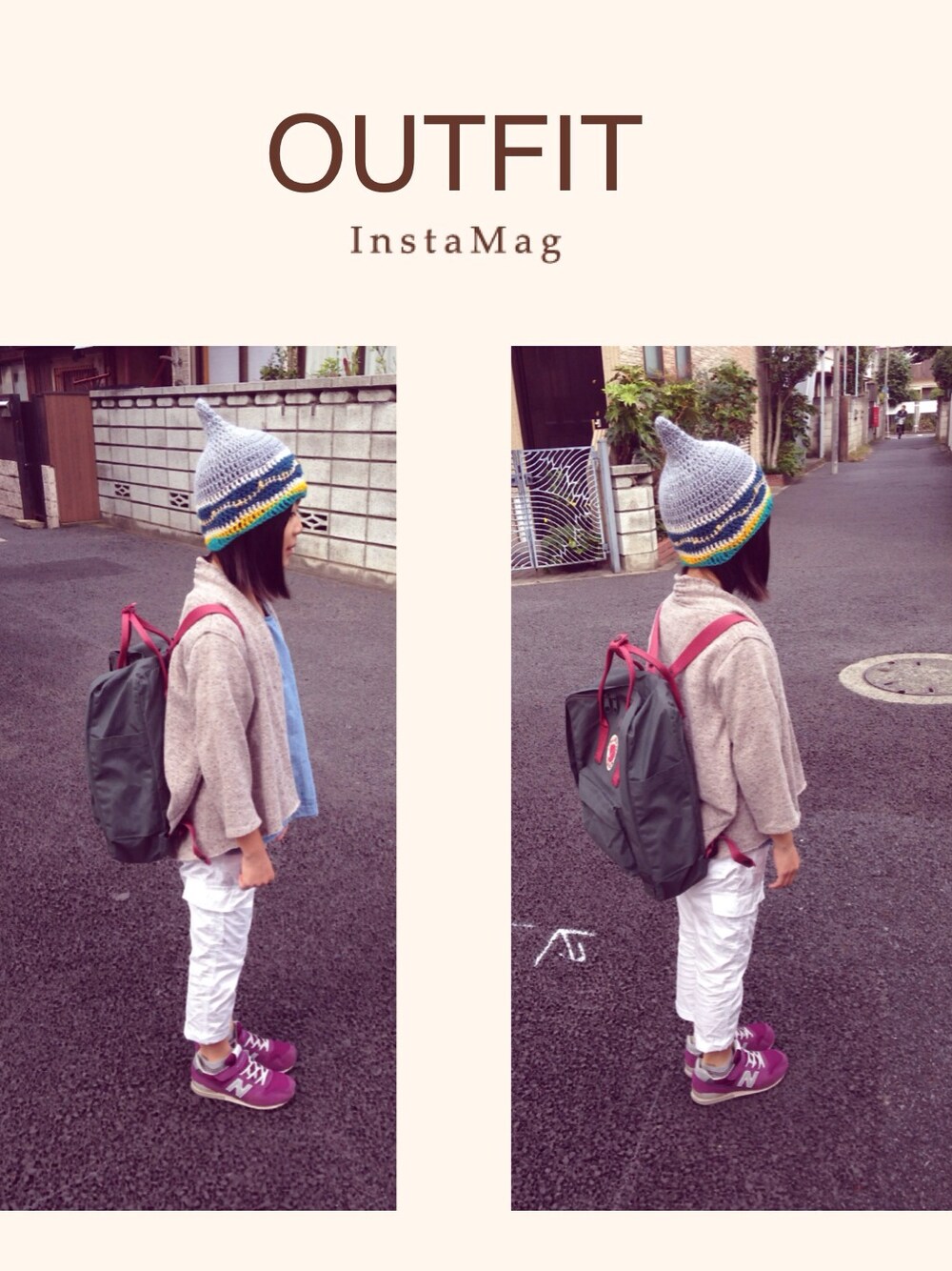 ニットキャップ…massitomoTamanoa カーディガン…petite oeuvre パンツ、ブラウス…GAP shoes…NB リュック…カンケンリュック