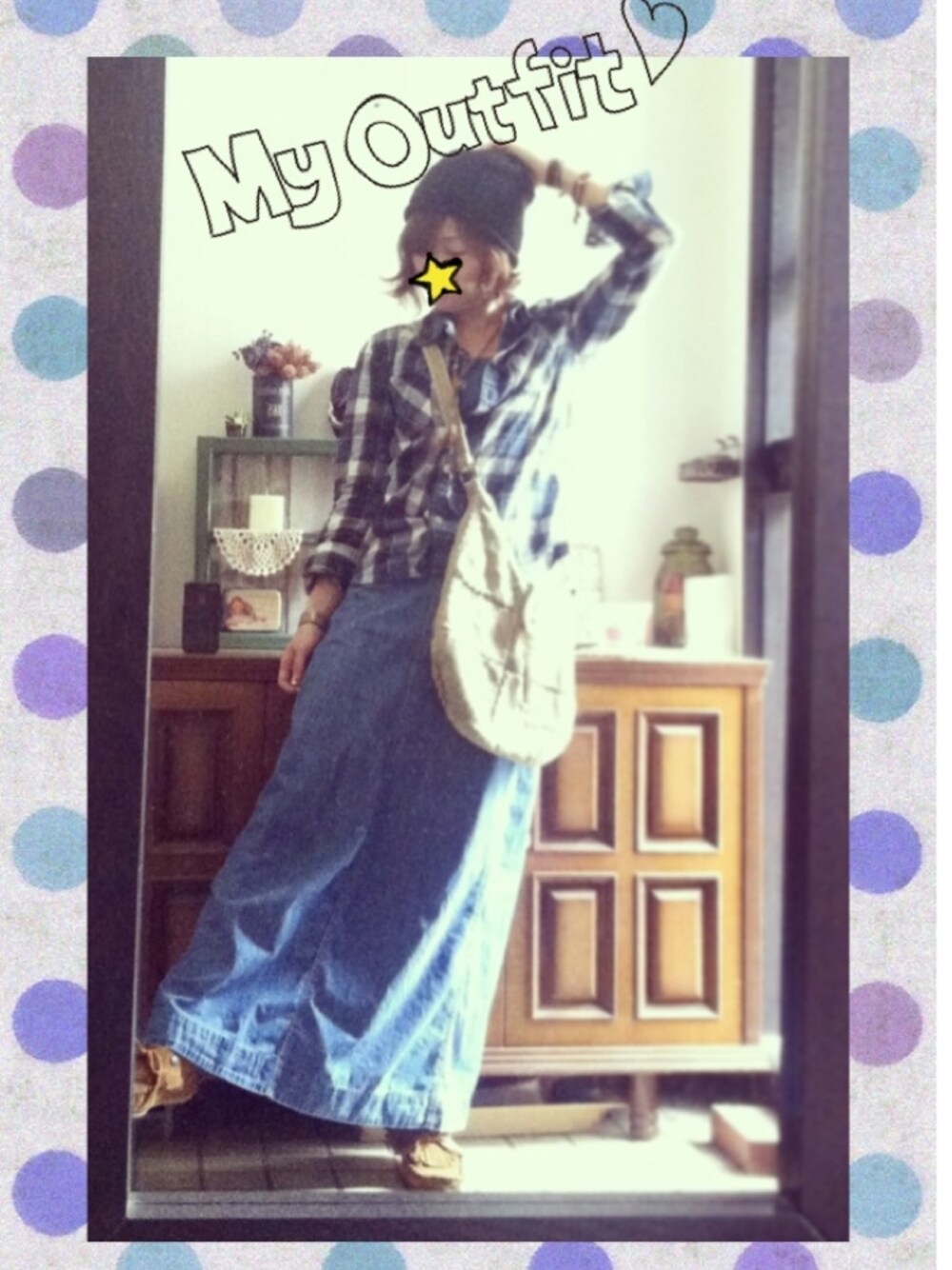 ろんぐなスカート 今日は暖かいけど風が強いー。 ボサボサの髪はニットキャップに任せちゃお。 GAPのジャンパースカート これ、夏にタンクトップと合わせるのが好き♡ 後ろがクロスになってて可愛いんです。 肩が出てないとジャンパースカートって野暮ったくなると思うのは私だけかな。 上に着たチェックシャツは、元々小さめだけど、丈をもっとコンパクトにしたくて、左右のボタンをずらして留めてます。 これで丈が短くなる。たまに使う技です。 珍しく、スウェードパッチワークバッグは市販のものです。整理してたら出てきて…可愛かったのでまた使ってます。 革のアクセサリーは全部、自作です♡ Natural Handmade Leather さぁ、今日も革のバッグ作りましょ。 がんばるぞっ。