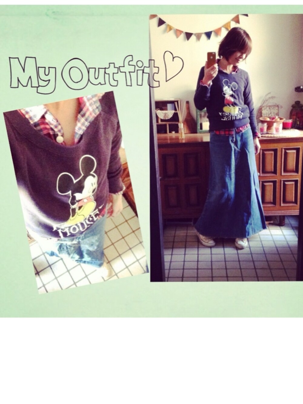 珍しくMICKEY UNIQLOのミッキートレーナーがあまりにツボだったので買ってみました。 結構いいかも♡