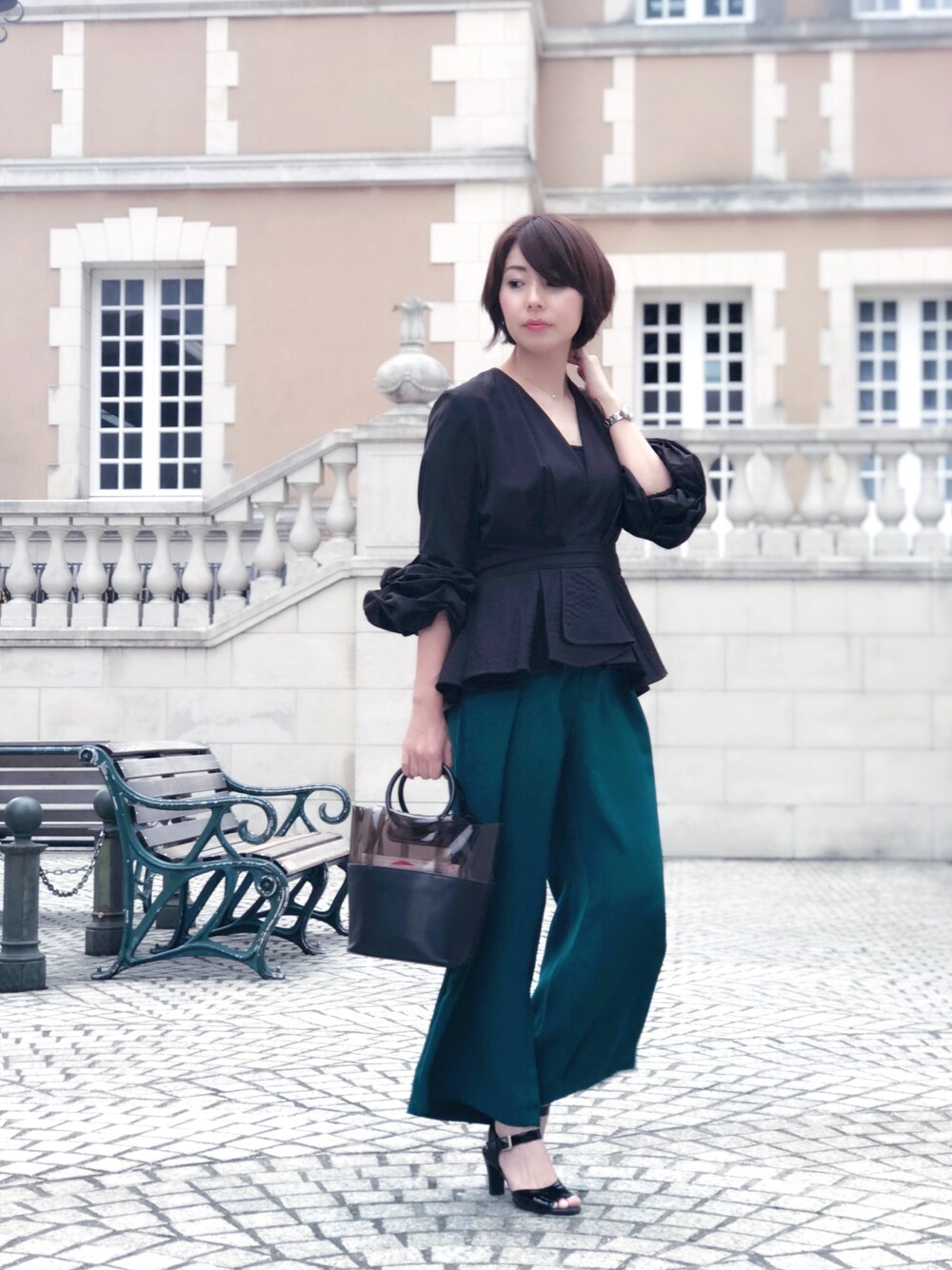 涼しかったのでやっと着たかったトップス着れた! ボリューミーな袖がおきにいり♡ 恵比寿だったので大人コーデにしました。