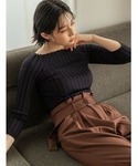 吉田亜理沙のニット/セーター「【ZOZO限定】フィットニットスクエアネック/リブニット」を使ったコーディネート