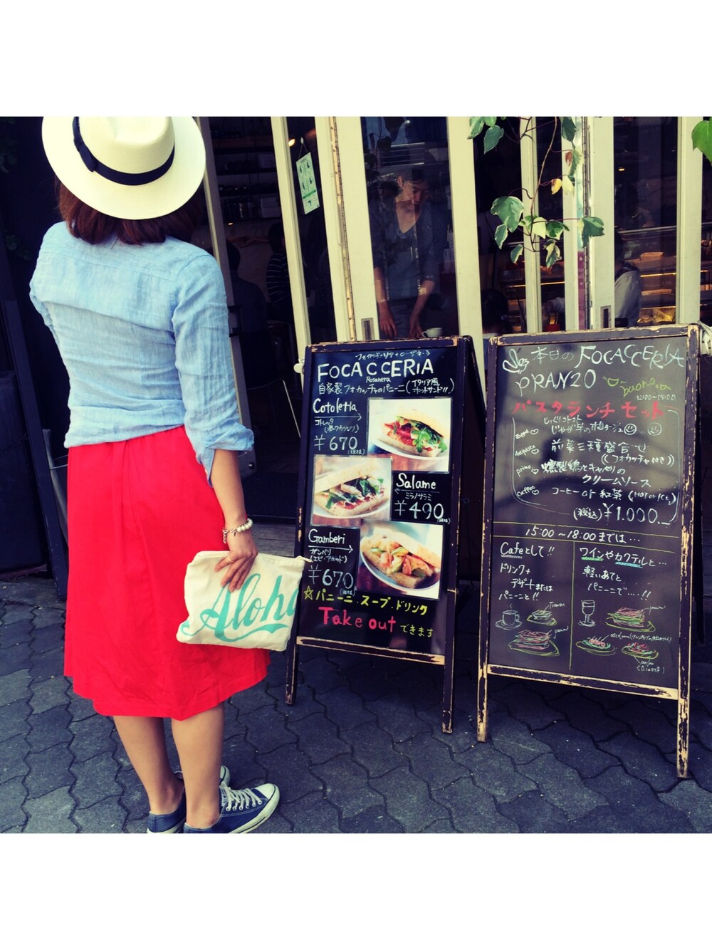 リネンシャツにサロペットを着ようとして、 たまたまスカートに変えようと履いてみたら合ったコーディネート😅 公園にピクニックだったので足元はスニーカー👟 HAWAIIで買ったポーチみたいなクラッチが合ったからもてたのが嬉しい日☀️