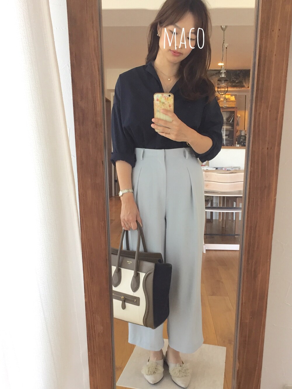 ken🍎macoのシャツ/ブラウス「レーヨンオープンカラーブラウス(長袖)」を使ったコーディネート