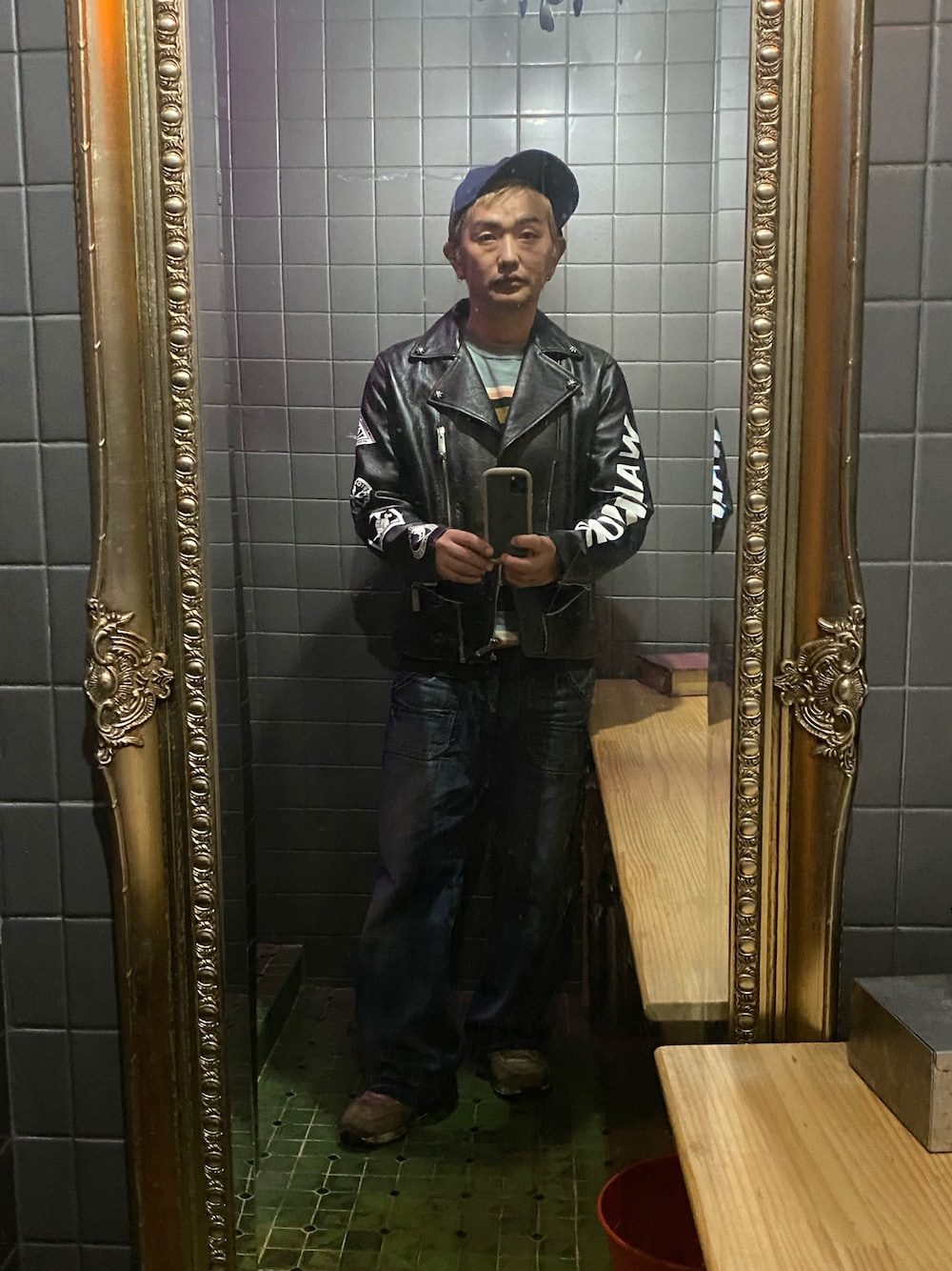 ダブルの革ジャンをワイドパンツで合わせストリートmixにしちゃう これもありですね