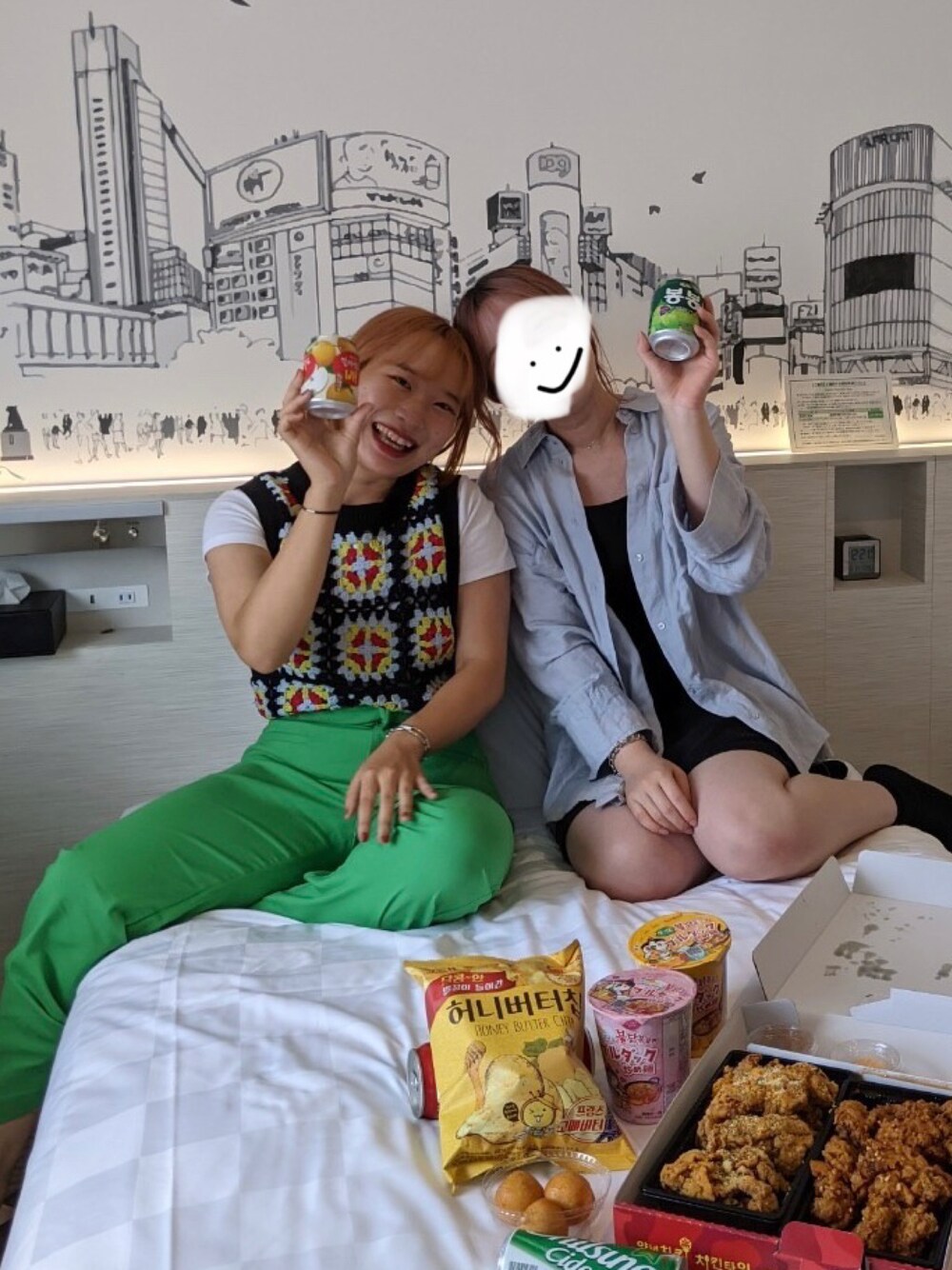 渡韓ごっこしにホテル女子会🏨💖 派手髪にしたので、派手派手コーデ👯♀️