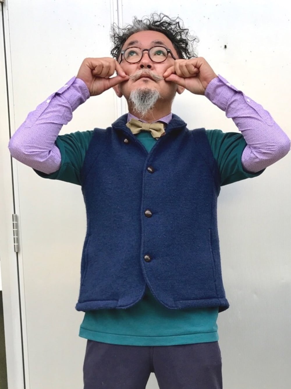 Yシャツにボータイ、からのオーバーサイズT&ニットのダウンベスト。タウンユースなビズならアリかなぁと…お花屋さんの営業マンとかw