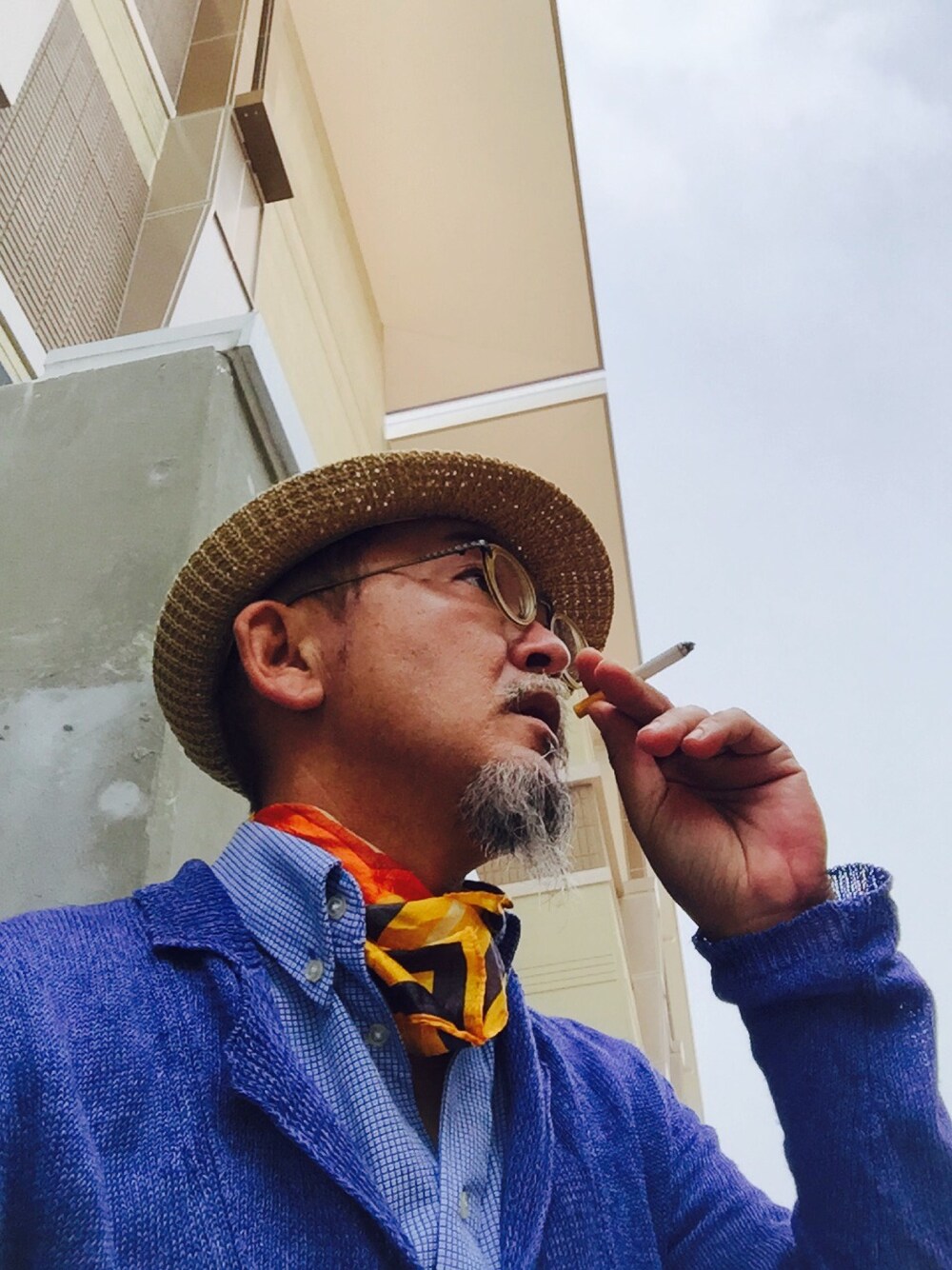 Scarfをオジサン巻きで。