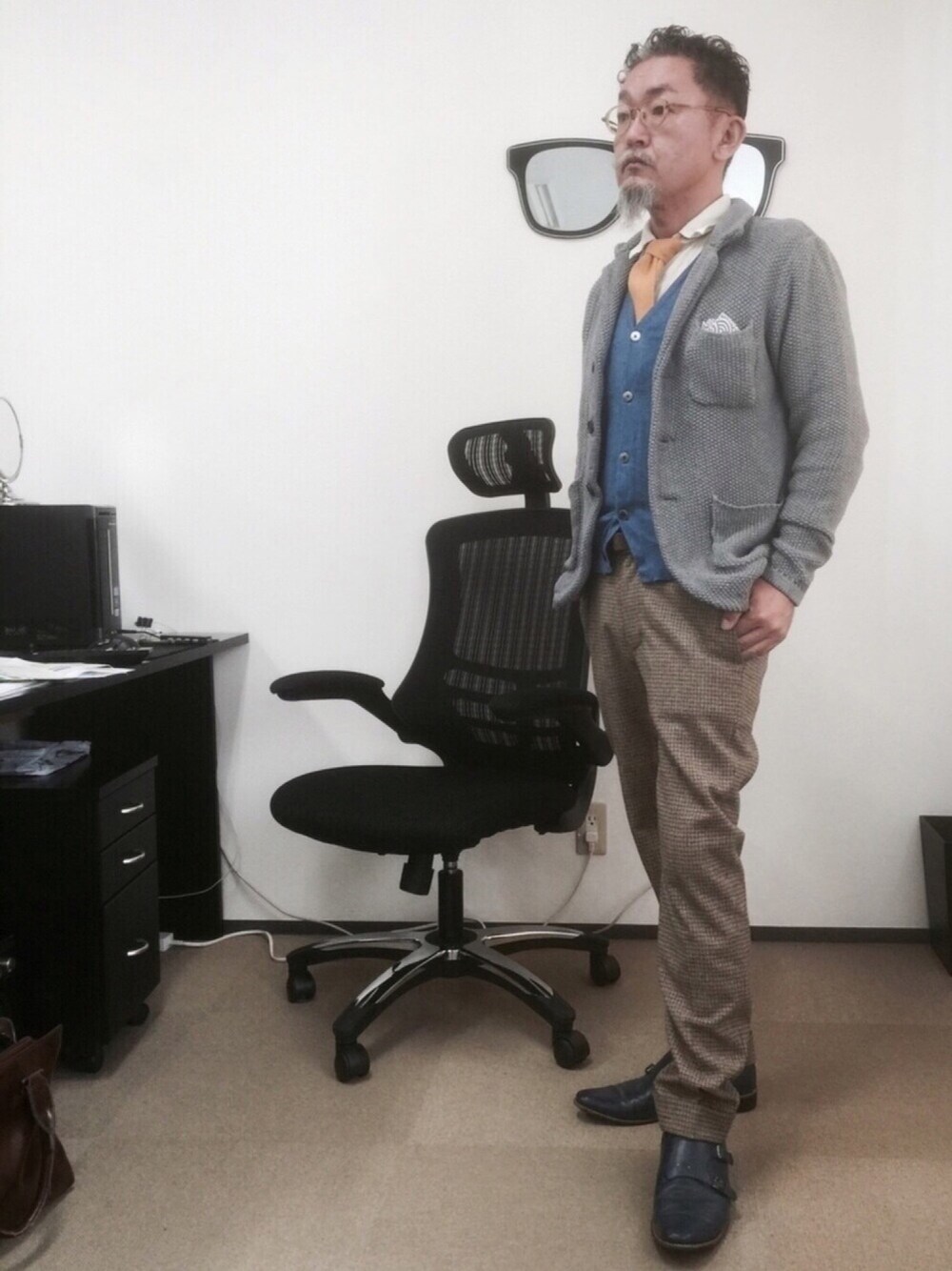 ヌケ感出すどころか全部ヌケ用アイテムを使ったコーデw ヨレヨレのシャツに今治タオル地のネクタイ、3ボタンのニットジャケ、百均で買った和柄手拭いをポケットチーフにしてwチェック柄のパンツ、真っ青のダブルモンクストラップ。 おおよそスーツとか着てワンポイントで「ヌケ感」出すって言いそうなモン全て使ってますw いやぁしかし久しぶりの上下glovalwork、だからついつい覗いてしまうのですよ、おいちゃんは。 パンツはカチッとにも合うし、おじいちゃんになっても履ける感じで冬マスト^ ^