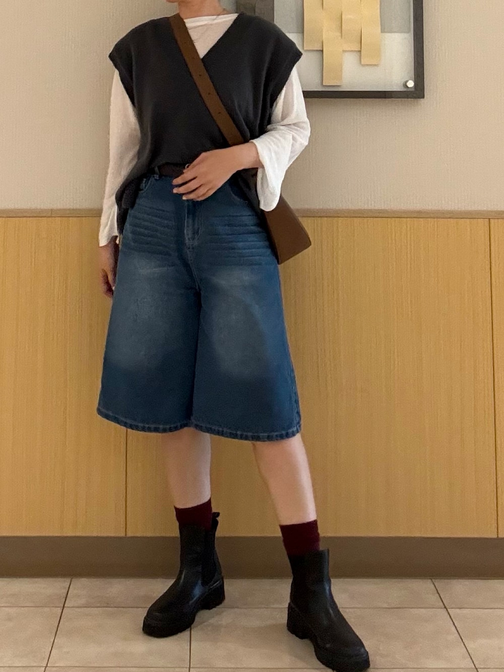 ベスト→しまむら グレー サイズMサイズ この歳で半ズボン 勇気いりましたが、、 膝下ならなんとかいけました!笑