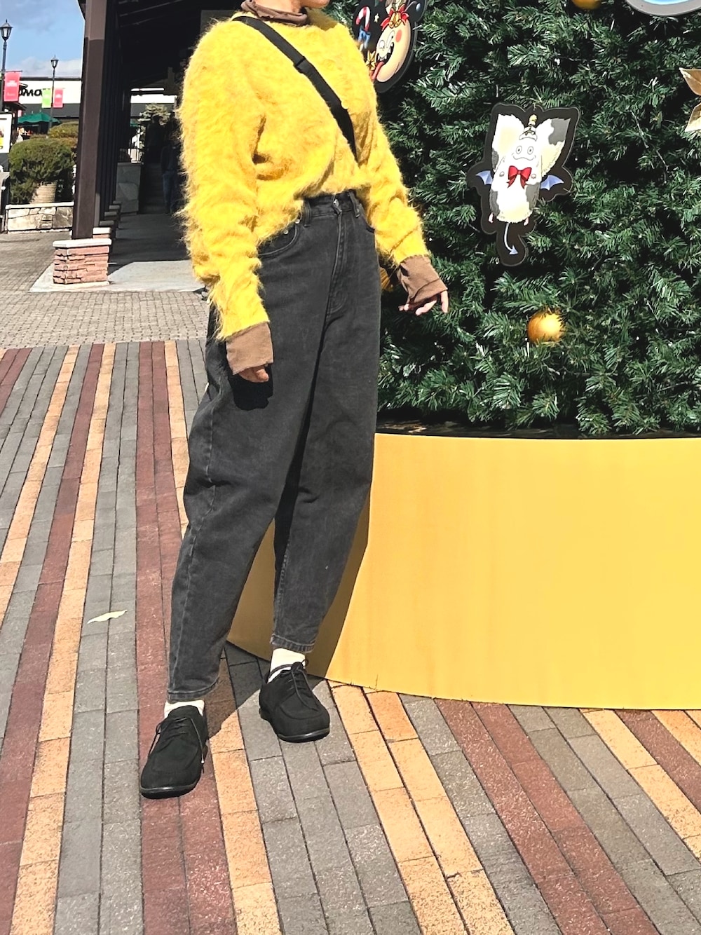 お外での投稿になります🌲 黄色のモコモコカーディガン 着回し出来るのですごく可愛いです😍 プチプラコーデ大好き! 安っぽく見えないコーディネート研究中👓