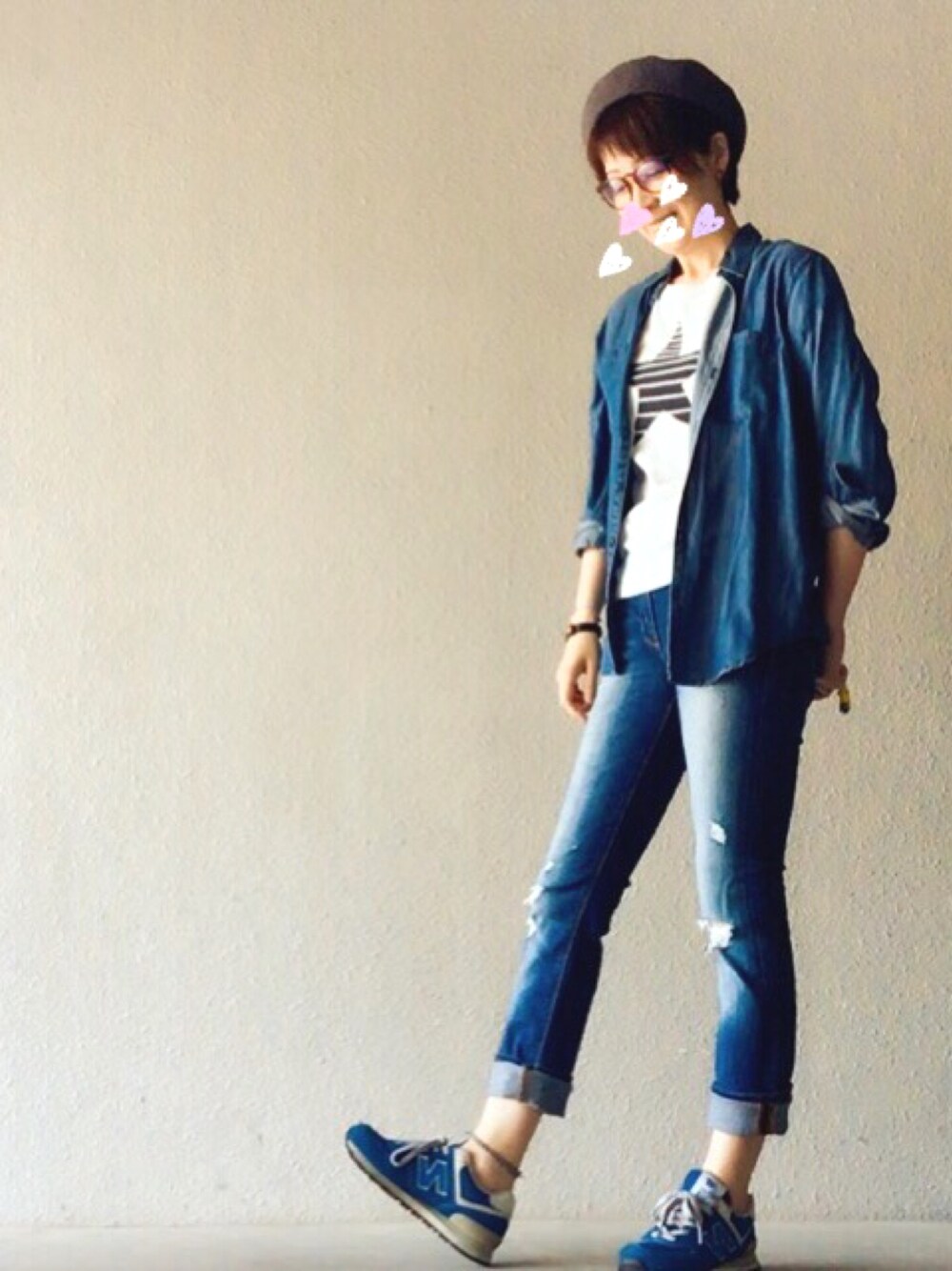 みなさんこんにちぃー♬ 昨日もいいねやセーブやコメありがとう😊 とってもうれしいです😆 今日はGAPコーデにしてみましたー٩(ˊᗜˋ*)و やっぱGAPのデニムホント履きやすーい♡ そしてシャツもGAPのだけどサラサラしててとっても着心地がよすぎるーーーーっ Tシャツは⭐︎♬ 見えないんだけど後ろの首のところにも⭐︎が4つか5つあってカラフルでかわゆいのよー♡ 爽やかにブルー×ホワイトでまとめてみましたー♬