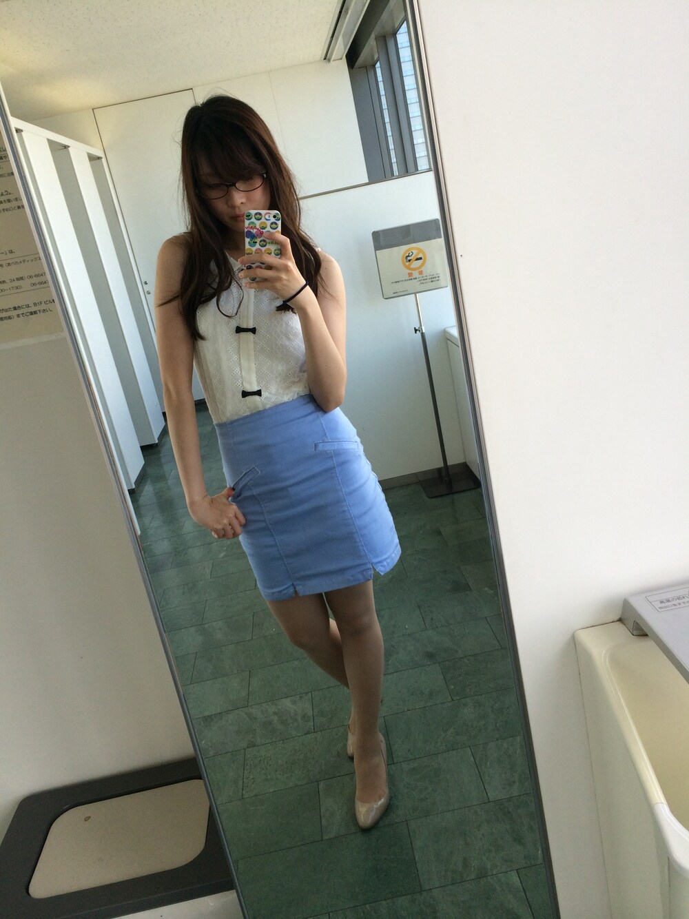 お気に入りのブラウスでOffice coordinate♡ 羽織は白のカーディガンだよ〜