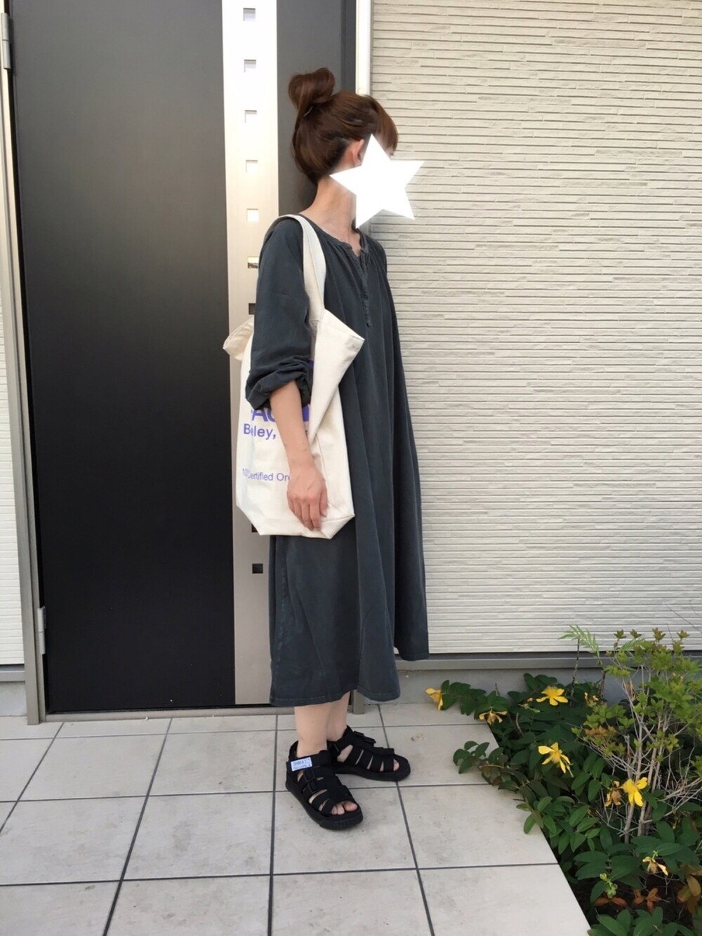 ワンピースに挑戦したくなったので😊 やわらかい素材で楽チン‼️ 今度食べ放題これ着て行こう😋