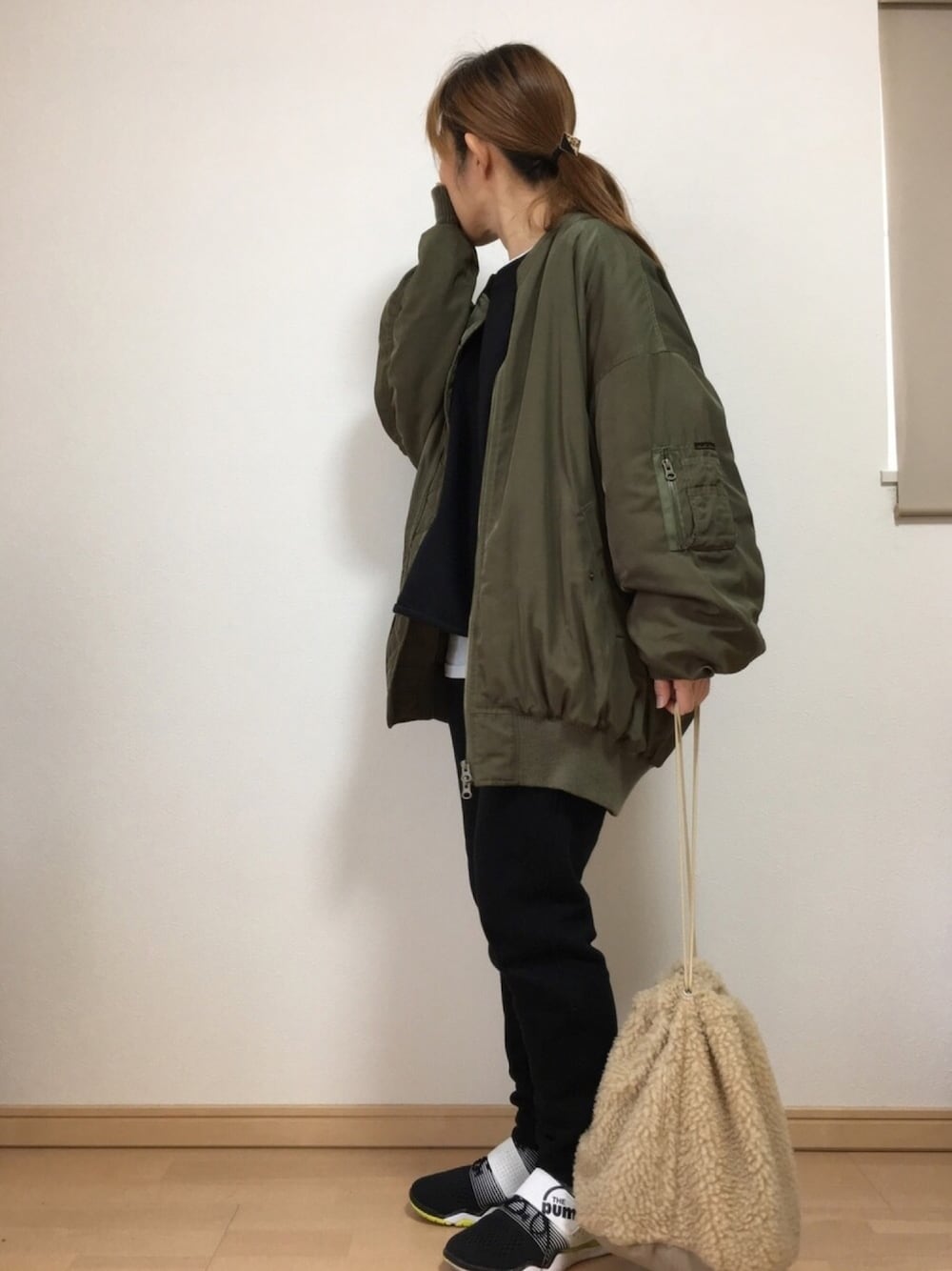 ゆるっとしたメルローのスウェットに ゆるっとしたMA-1合わせてみました😊