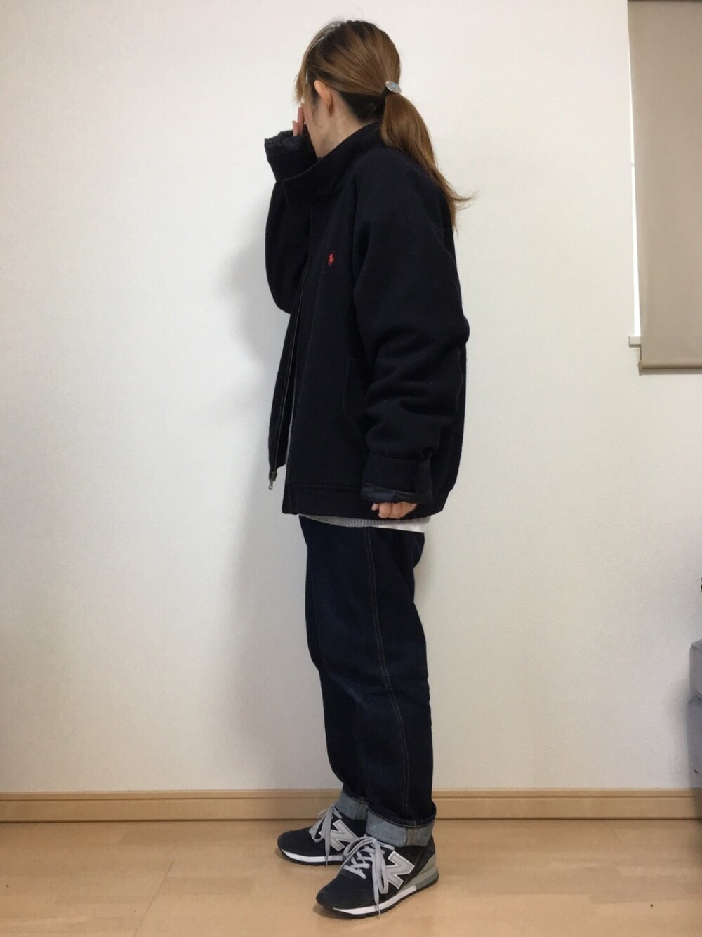 アウターはラルフローレン古着です。 見えてないですが、中は白スウェット+ グレーカーディガン着てます😊