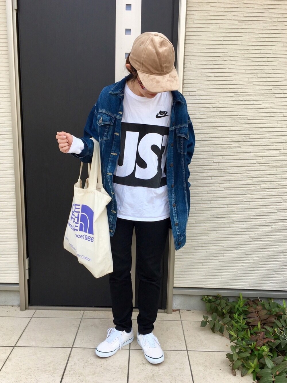 デニジャケの着まわし😊 ナイキのロンTは去年のものです。