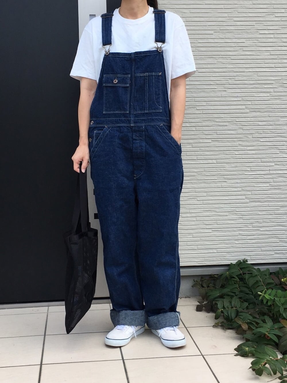 シンプルに白Tにデニムのオーバーオール合わせ😊