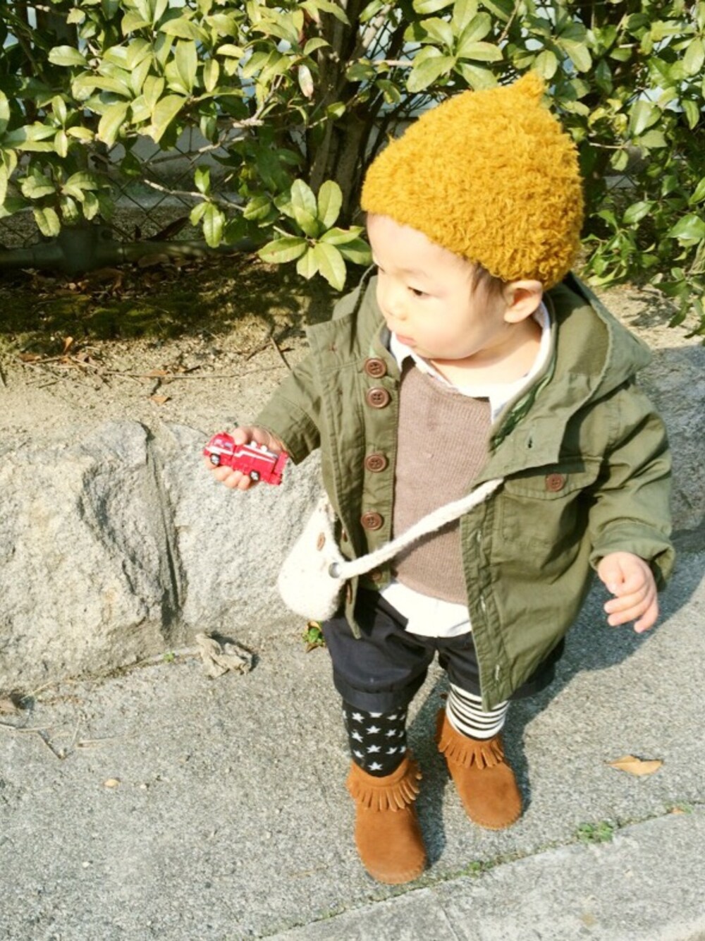 ミリタリージャケット:GAP ニット:韓国子供服 ポシェット:handmade レギンス:西松屋 靴:MINNETONKA モケニット:cokitica 今日は午前中色々済ませて、 お昼ご飯二人で外食♡ 怪獣なのでハラハラしていたけど、 ファミレスなら何とかいける!! でも、かなりの速さで食べる息子氏( ;´Д`) なのでこっちも渋々早食いしないといけない… だからあっと言う間にファミレス終了!笑 いつかは2人でゆっくりランチしたいな〜♡ その後、久しぶりに公園に寄って帰りました♡ いつもブランコしか乗らないけど、 今日は公園貸切りだったから、滑り台で遊ばせてみた♡息子氏初滑り台に大興奮〜♡ 上に一緒に登ってあげたら、高さに感動して、 ずーっと叫んで可愛かった〜♡笑 子供って、本当にリアクションが面白い♡ 今日はモケニットを被せたかったので、 ナチュラルコーデ♡ やっぱりモケニット、 子供らしくて可愛い〜な♪(´ε` )