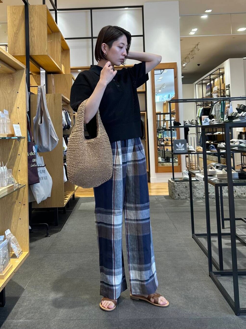ご覧頂きありがとうございます🙇♂️ ネイビーのリネンチェックイージーパンツにFORK&SPOONのメッシュパターンニットポロでゆるめなカジュアルコーデにしました! リネンチェックイージーパンツはほどよい丈感と、ゆとりのあるデザインなので、合わせやすいです〇 是非店頭でお試しください✨