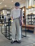 ゆったりとしたストレスフリーな休日コーデを組んでみました✨ ブークレボーダープルオーバーは綿ポリの素材感が着心地よく、使い回しやすいです◎ カラーも3色展開と、どれも捨て難いです。 是非店頭でお試しください!!