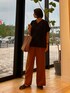 形の綺麗なVネックウエストギャザーブラウスにツヤ感のあるワイドパンツを合わせました。 ウエストのゴムは締め付けすぎないのでゆったり着れるのにシルエットが可愛くて素敵です◎ 是非店頭でご覧ください✨