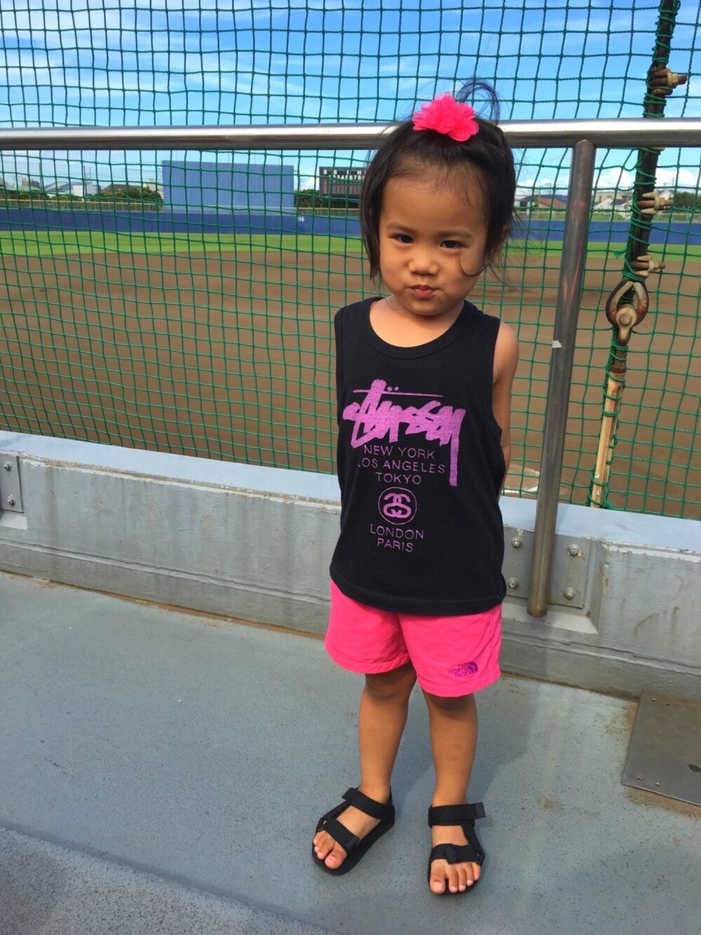 誰もいない野球場⚾️ ビタミンカラーの夏コーデ🌻🍍🍉🍧