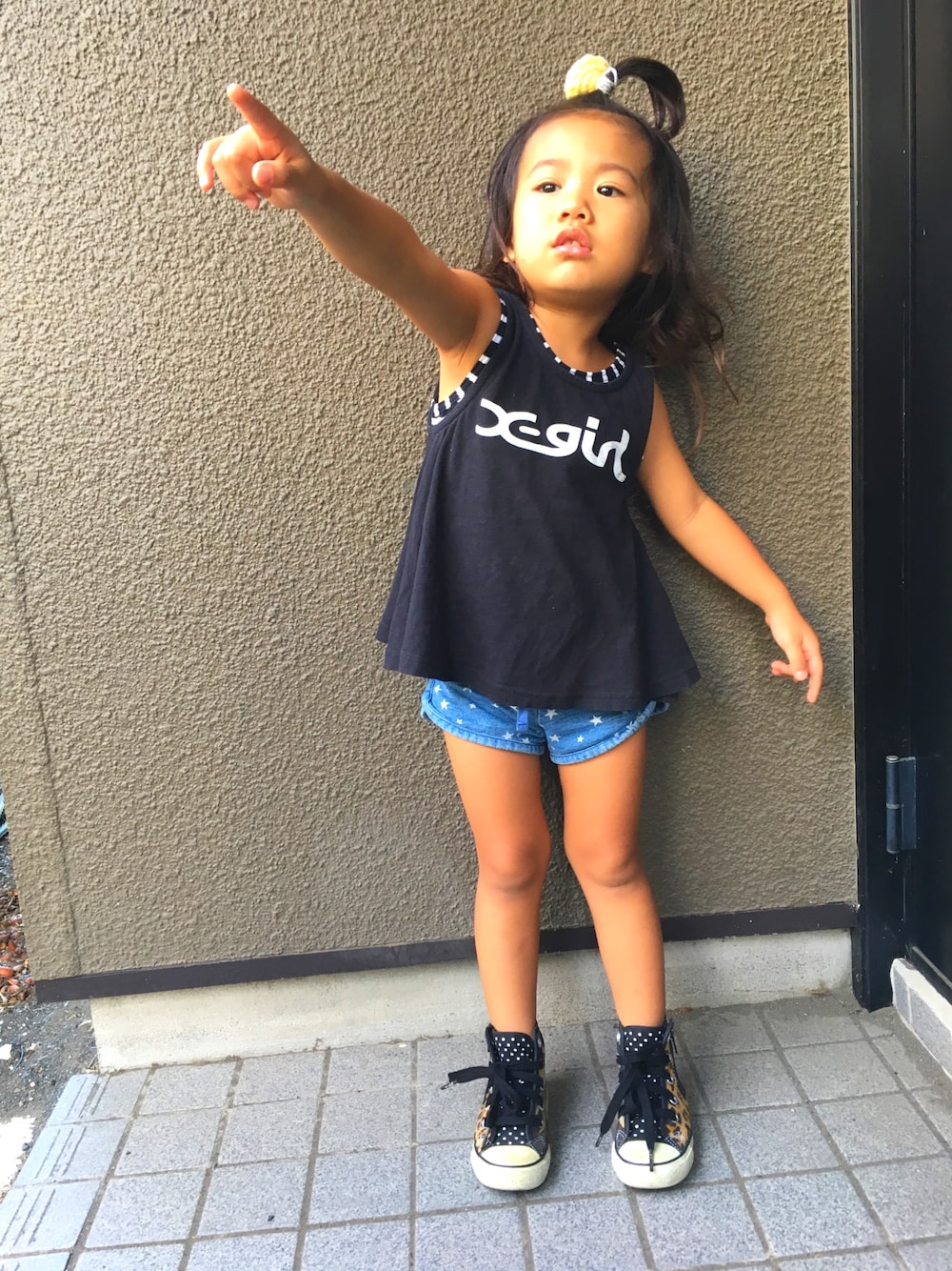あっ❗️ねこちゃん😸 のポーズ📸 すっかり夏コーデ😎 いつもサンダルだったけど ショートパンツにスニーカーって カワイイなぁ😍 見ていただきありがとうございます😊