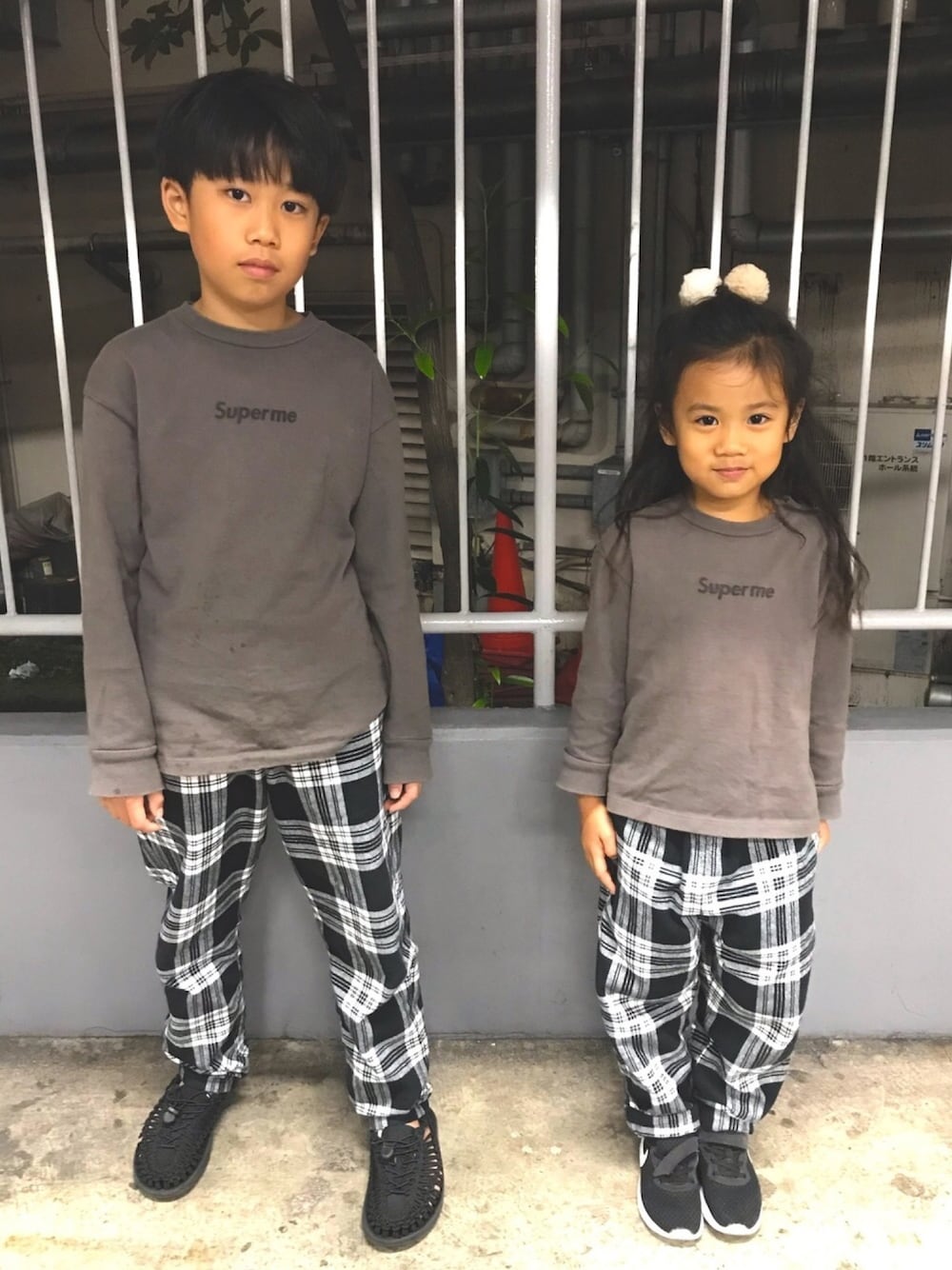 お気に入りのトップスに買ったばかりの GUのシェフパンツ👖 とてもかわいくてオススメ✨ 私もお揃いのトップスに去年買った 似たシェフパンツがあったので みんなで着ました♡