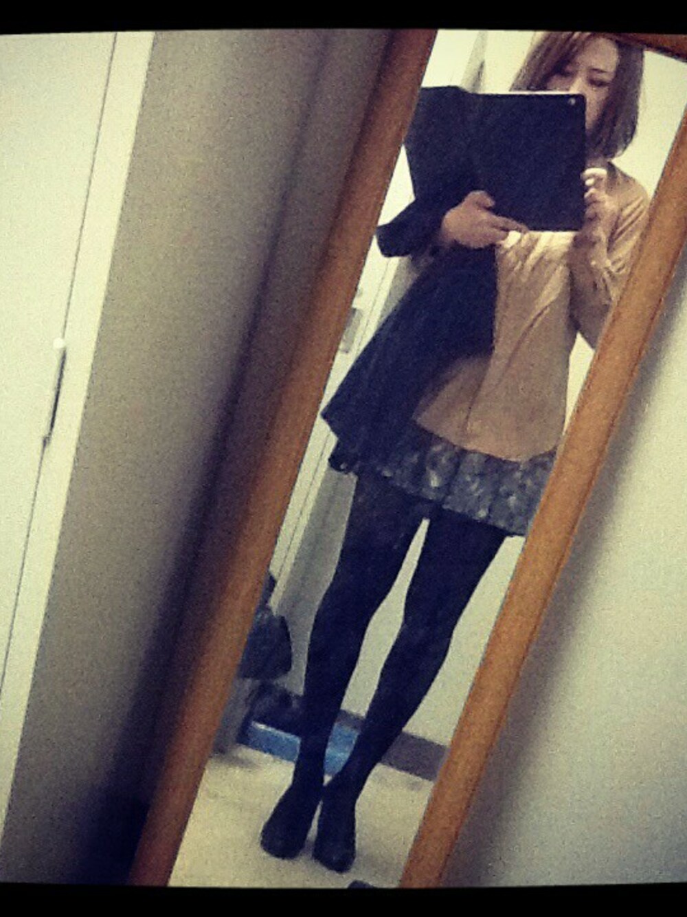 ベージュ系のシャツ/ブラウスを着用したレディースの冬コーディネートの1枚目の写真