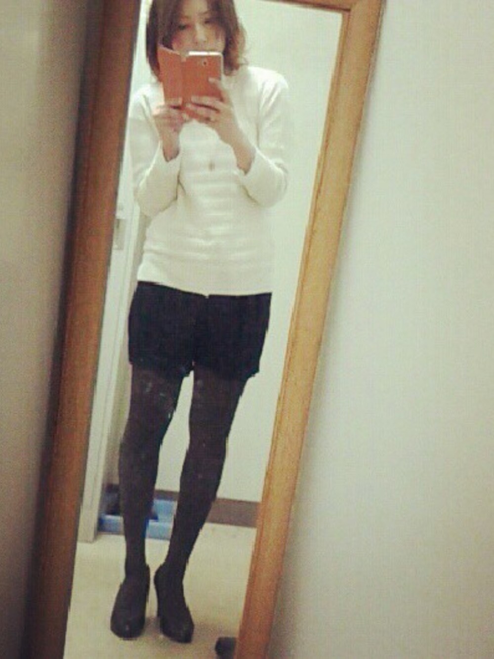 あったかいですね。今日? UNIQLOでセールになってたから春気分? 格安だったから思い切ってオフホワイト(´∀`) 長靴(エーグル)通勤です。