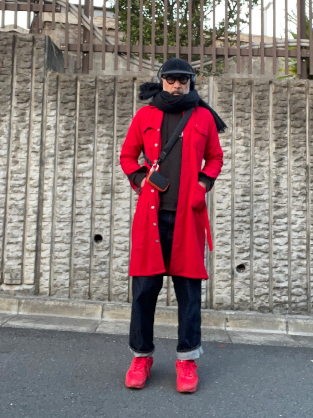 少し暖かくなってきたのでアウターなしで外に出てみる。羽織ってるのはコートに見えるけど、実はロングシャツ。これもレディース。シャツにベルト付けちゃうこういうアイデアは男服にはないよなあ。キャップにパーカーでカジュアルにまとめました。