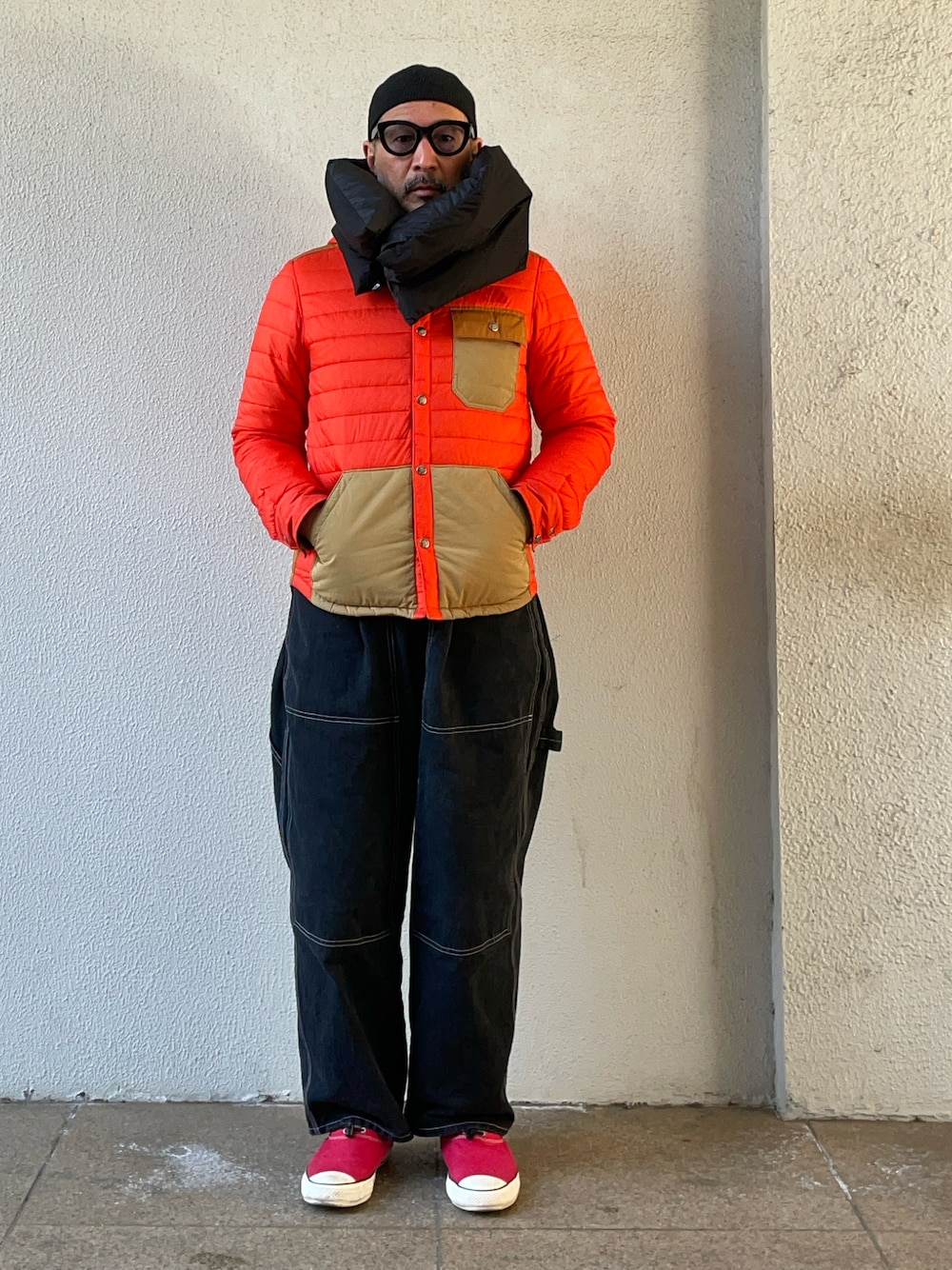 ダウンマフラー。文句なしに暖かく、実用的で、見た目のインパクトもあります。服が高くて買えない昨今、こういう小物が増えていくというね。最近だとメガネふたつ、マフラーふたつ、帽子、バラクラバ、、ぜんぶ合わせたら余裕でスーツ買えるぐらいのお金使っています。こういうの何とか貧乏って言うんだよね?まあいいか。