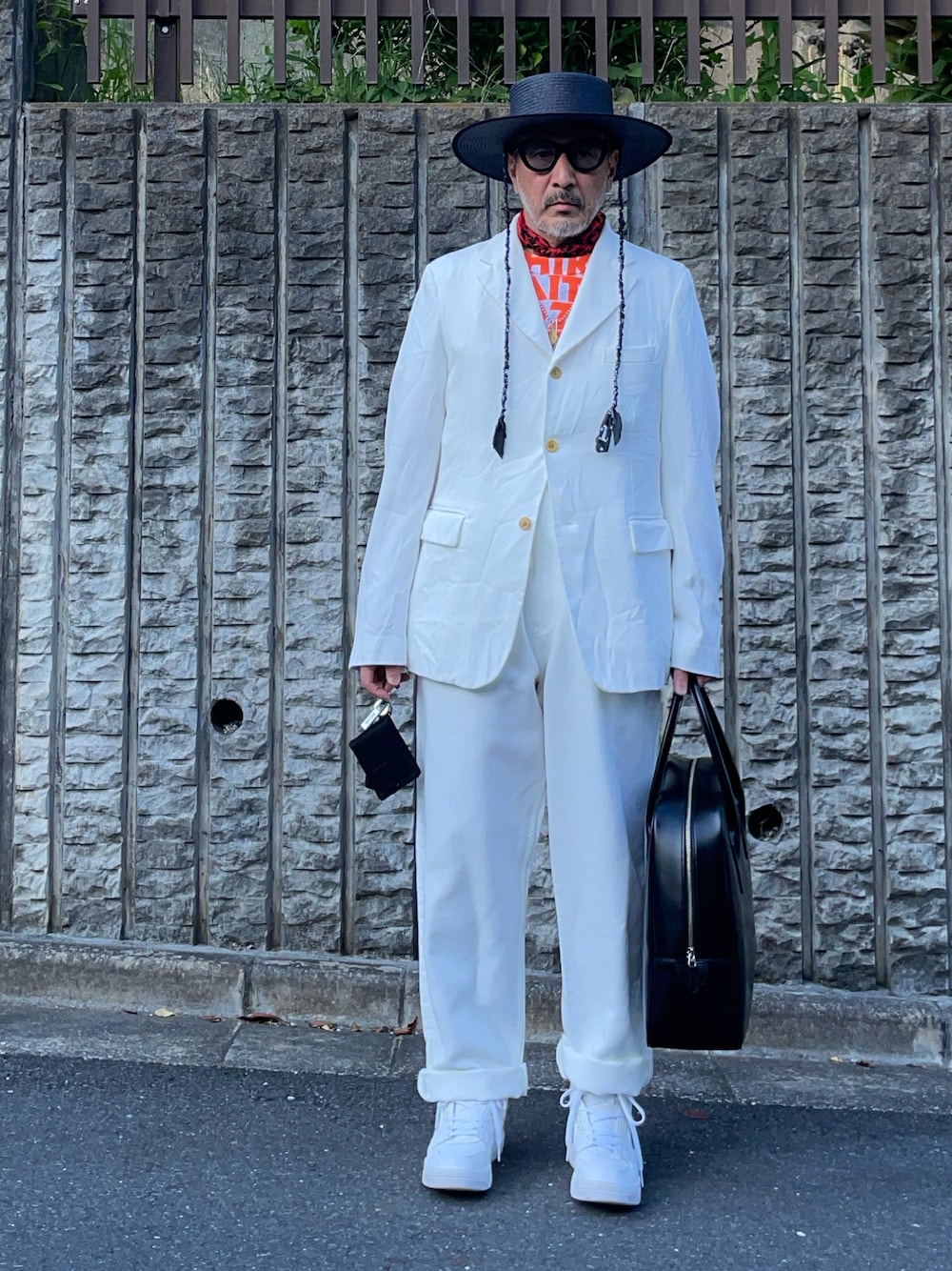 夏のお出かけにワンセット持っていたい白ジャケ&パンツ。春の買い物出遅れて、上下共にジャストサイズがなく、特にジャケットは2サイズオーバー。多少の妥協感は否めないのですけど、まあ、コレはコレでオッケー。というかこれぐらいルーズな着こなしの方がむしろベターな感じもします。このジャケットは裏に細工がありまして、裏表逆に着るとけっこう面白いの。こんどまたご紹介いたします。