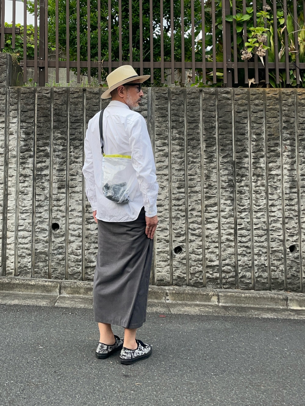 夏のマイ定番。タイパンツ、今年も活躍しています。アロハシャツなんかも似合うと思うのですけど、長袖白シャツと合わせました。リゾートっぽくも小綺麗にまとまっていると思います。