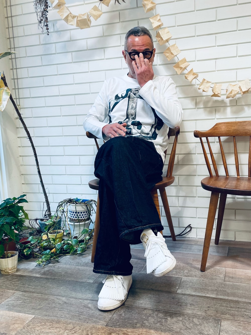ユーズドのスニーカーなどを使ってマスクやアート作品を作るアーティスト Yusuke Nakataさんの個展に行ってきました。こういうところで売ってるTシャツは、まあ、買っちゃいますよね。ロンTというのもいいし、シルクスクリーンで一枚一枚丁寧にプリントされてるのもGOOD。ガンガン着たおします。