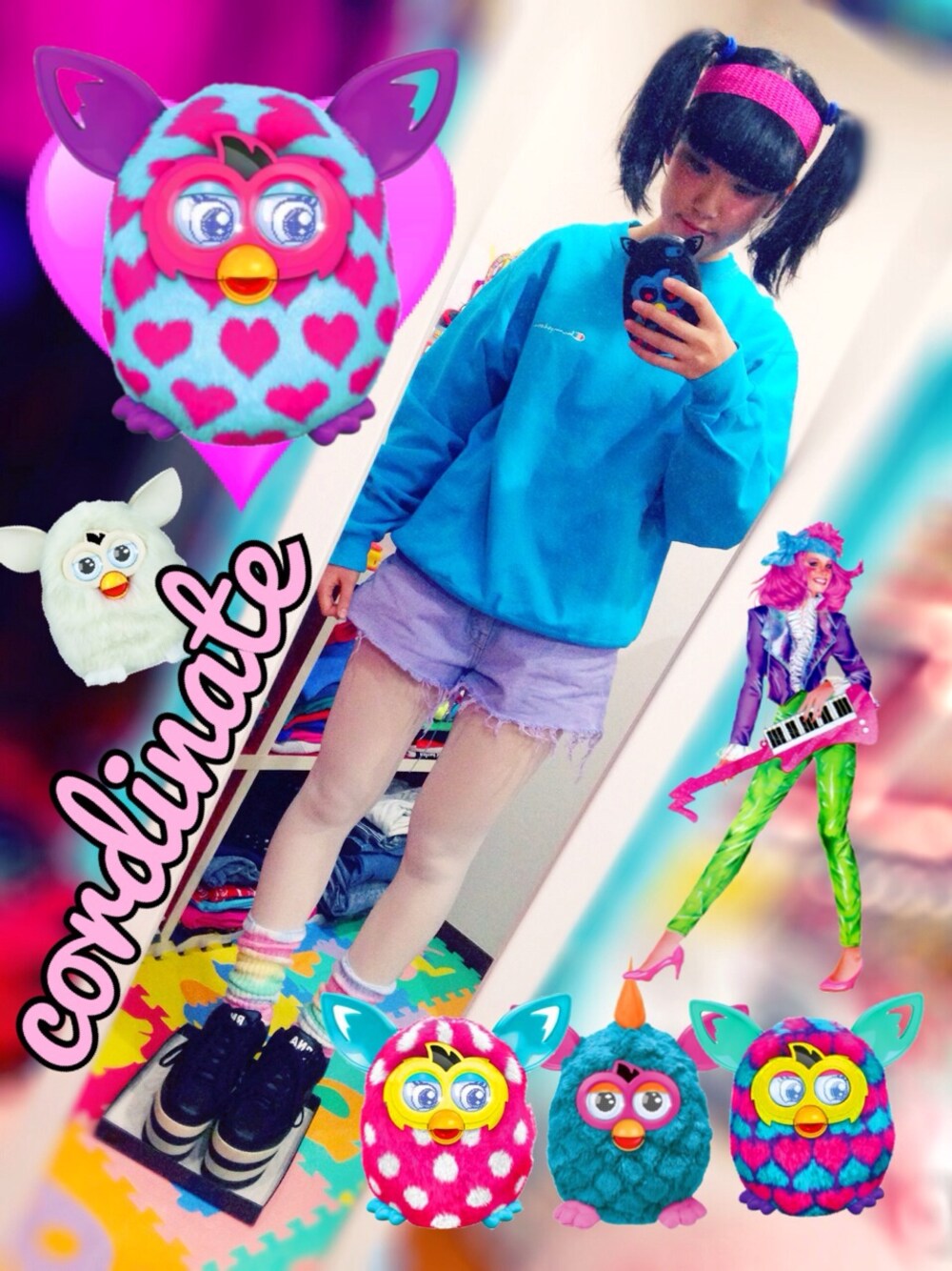 今日1日家で服きて遊んでました👗💕 ピックアップタグが ルーズソックスということで💜💙 めずらしく髪結んじゃってます👧🎀