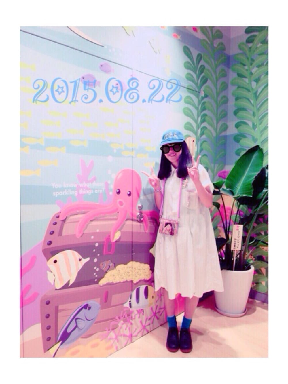 昨日のコーデ。 仙台うみの杜水族館に行ってきました🐬💕 水族館ということで友達とドレスコードを青に決めて、小物を青で揃えてみました💙