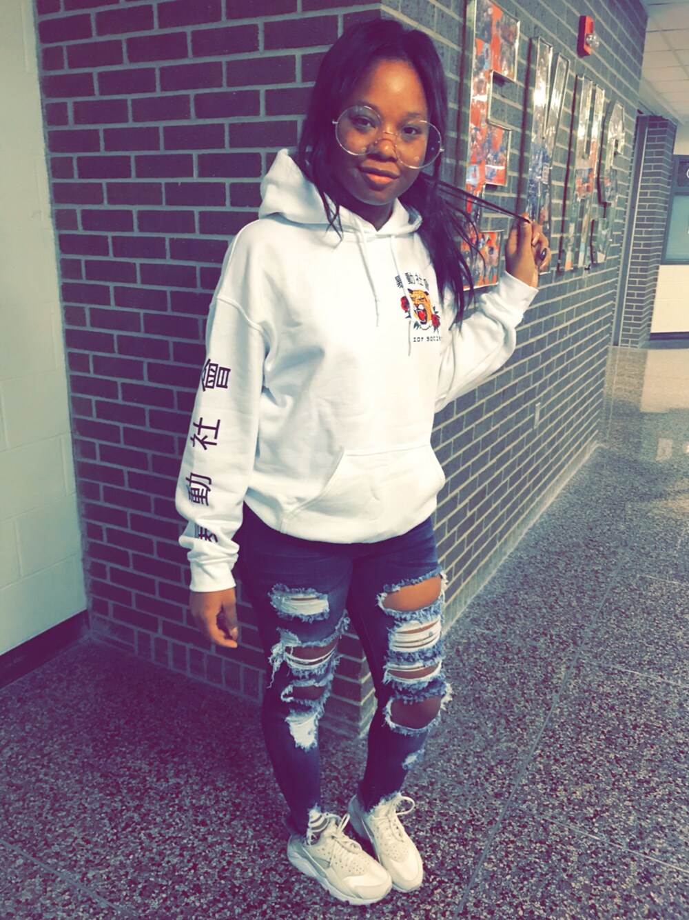 White hoodie and denim jeans 🙃